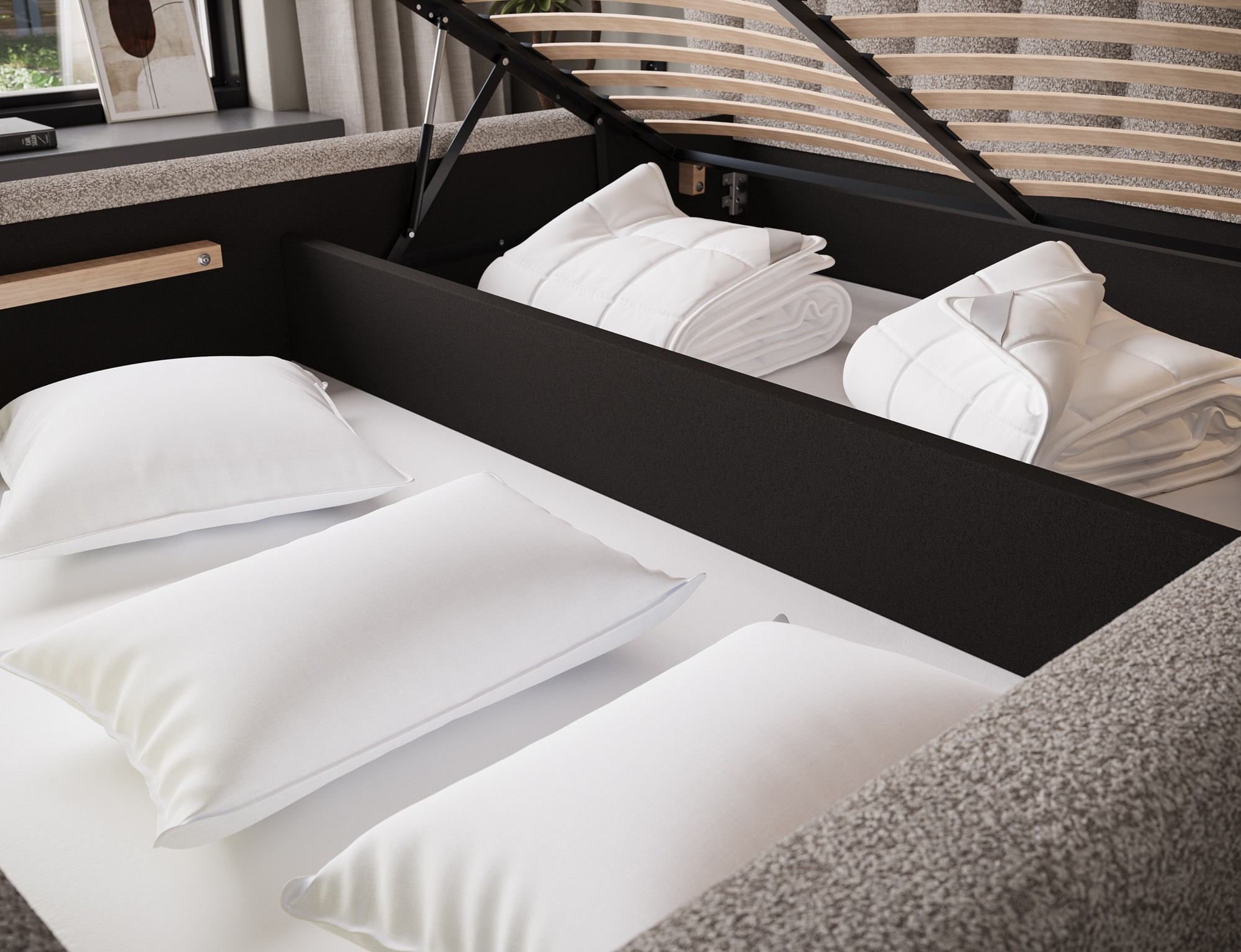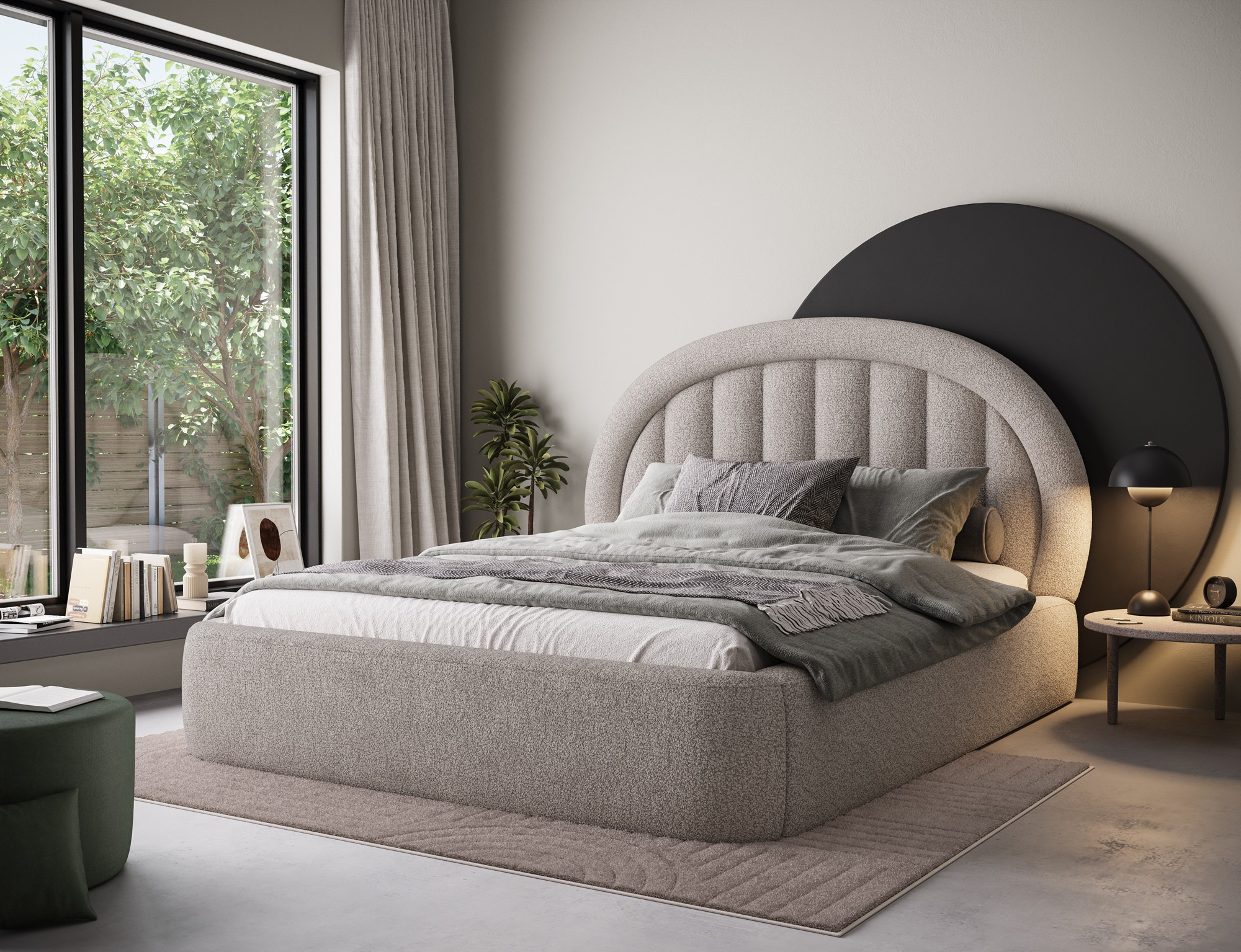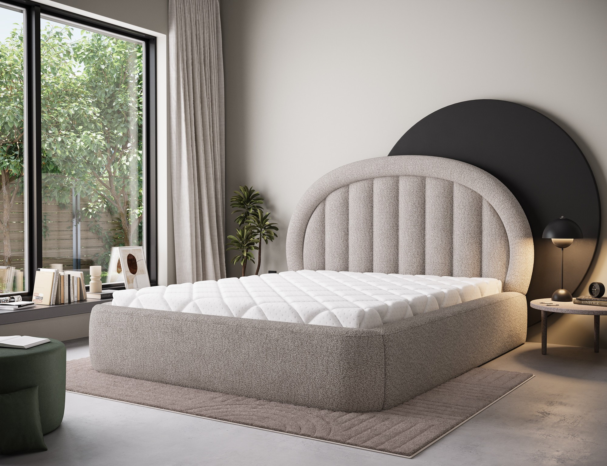 Posteľ do spálne Tapedo kombinuje moderný dizajn, funkčnosť a pohodlie pri spaní. Dostupné v troch veľkostných variantoch: 140x200 cm, 160x200 cm a 180x200 cm, umožňuje prispôsobiť šírku vašim individuálnym potrebám – 165 cm, 185 cm alebo 205 cm. Celková výška postele je 131 cm a hĺbka je 221 cm, čo konštrukcii dodáva elegantný a vyvážený vzhľad. Výplň z vysoko kvalitnej polyuretánovej peny T2130 zabezpečuje optimálnu podporu tela a vynikajúce pohodlie. Posteľ Tapedo je vybavená praktickým úložným priestorom na posteľnú bielizeň, ktorý uľahčuje udržiavanie poriadku vo vašej spálni. Stabilné čierne plastové nohy dodávajú dizajnu ľahkosť a moderný nádych. Vďaka svojej solídnej remeselnej práci, funkčným vlastnostiam a estetickej forme, posteľ Tapedo dokonale dopĺňa moderné interiérové usporiadanie, čím vytvára elegantný a útulný priestor pre odpočinok.