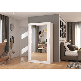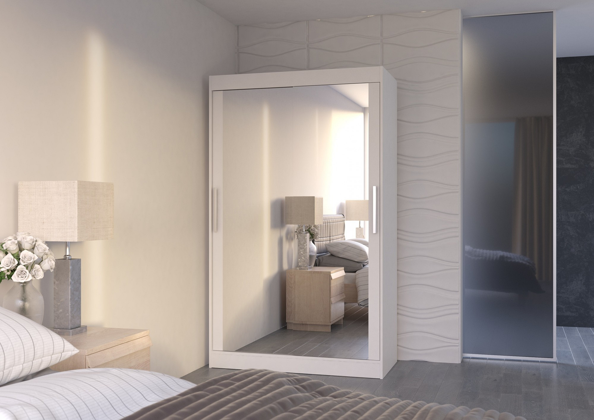 Šatní skriňa s posuvnými dverami a zrkadlom TIBAGO 120 Biela+Biela