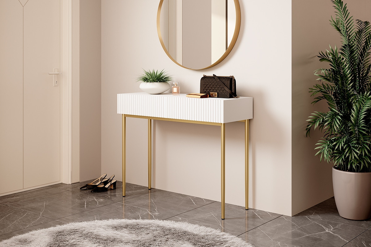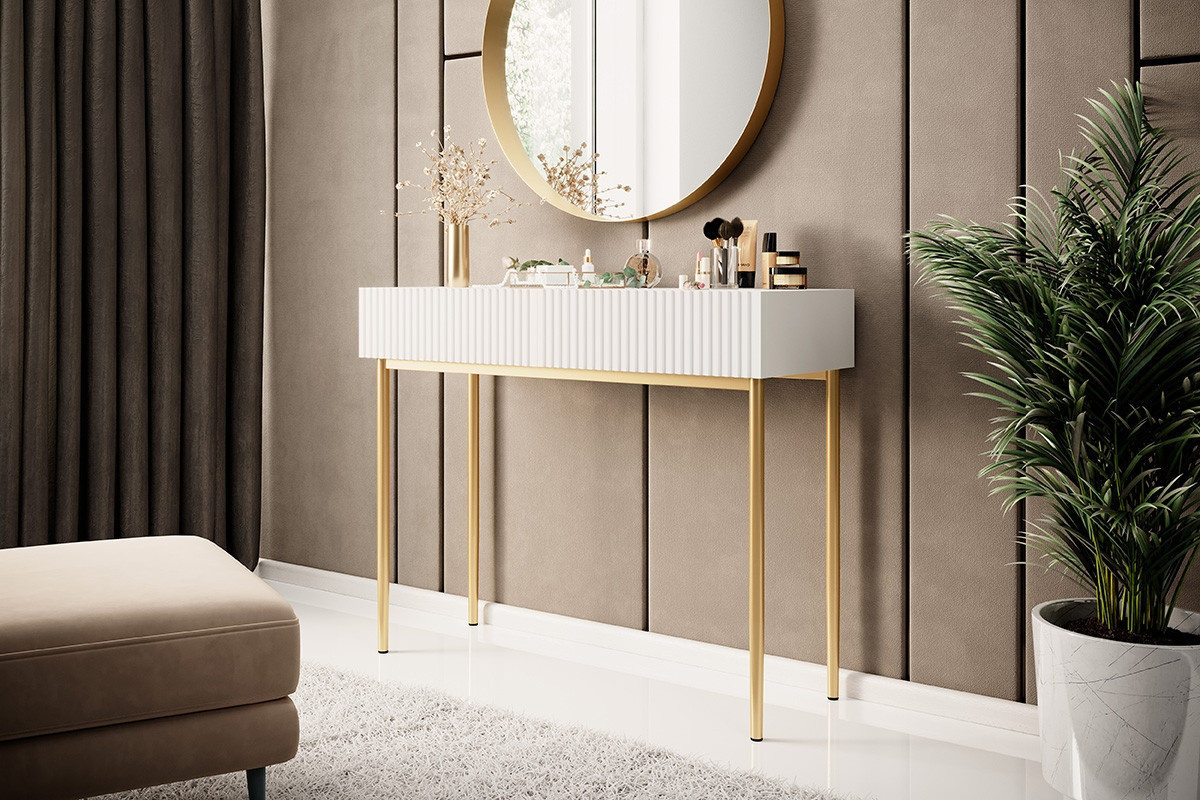 Moderný toaletný stolík Nicole - biela podložka / zlaté nohy, šírka: 100, výška: 82, hĺbka: 37, montáž: vlastná.