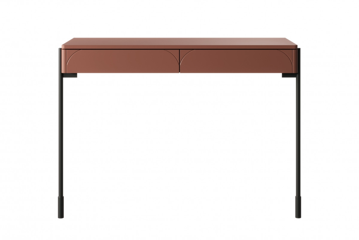 moderný konzolový / toaletný stolík Sonatia - bordová, šírka: 100, výška: 72, hĺbka: 45, montáž: vlastná. Elegantná komoda v bielom lesku.