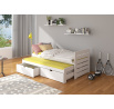 Dvojitá posteľ TOMI je ideálnym riešením v izbe pre dvoch súrodencov. Dokonale sa osvedčí aj v prípade návštevy nečakaných hostí. Model je dostupný v dvoch veľkostiach a v mnohých farbách, ktoré sa hodia do každého usporiadania. Posteľ má dve praktické a funkčné zásuvky na posteľnú bielizeň a odolný a pevný rám vyrobený z borovicového dreva. Spolu s posteľou obdržíš sadu penových matracov o hrúbke 8 cm.