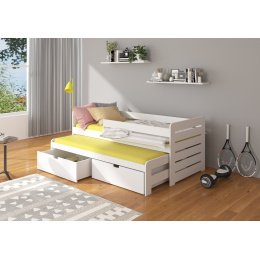 Dvojitá posteľ s bariérkou TOMI je ideálnym riešením do izby pre dvoch súrodencov. Dokonale sa osvedčí aj v prípade návštevy nečakaných hostí. Model je dostupný v dvoch veľkostiach a v mnohých farbách, ktoré sa hodia do každého usporiadania. Posteľ má dve praktické a funkčné zásuvky na posteľnú bielizeň a odolný a pevný rám vyrobený z borovicového dreva. Pre zvýšenie bezpečnosti vášho dieťaťa bol model doplnený o ďalšie zábradlie chrániace pred pádom. Matrace nie sú súčasťou postele.
