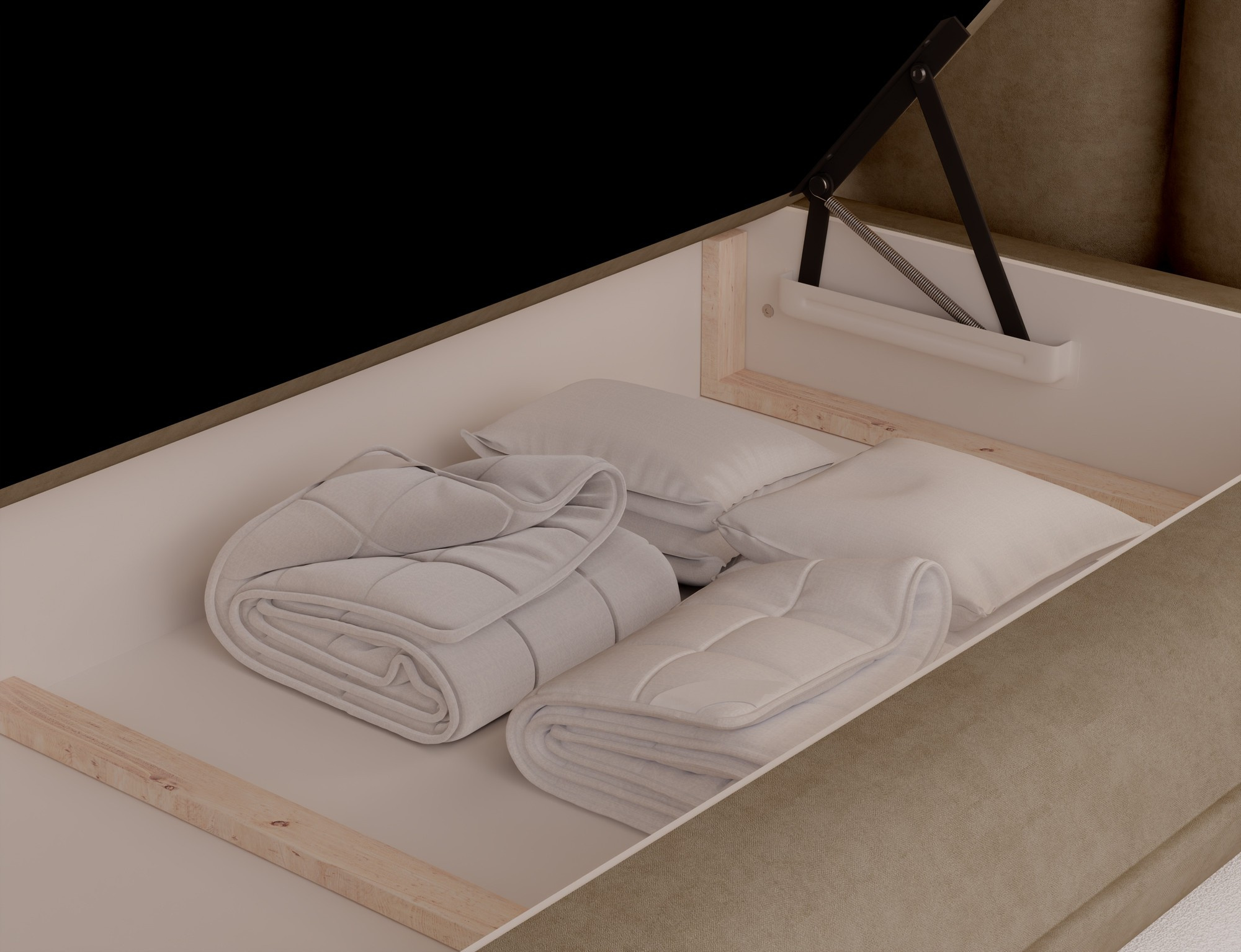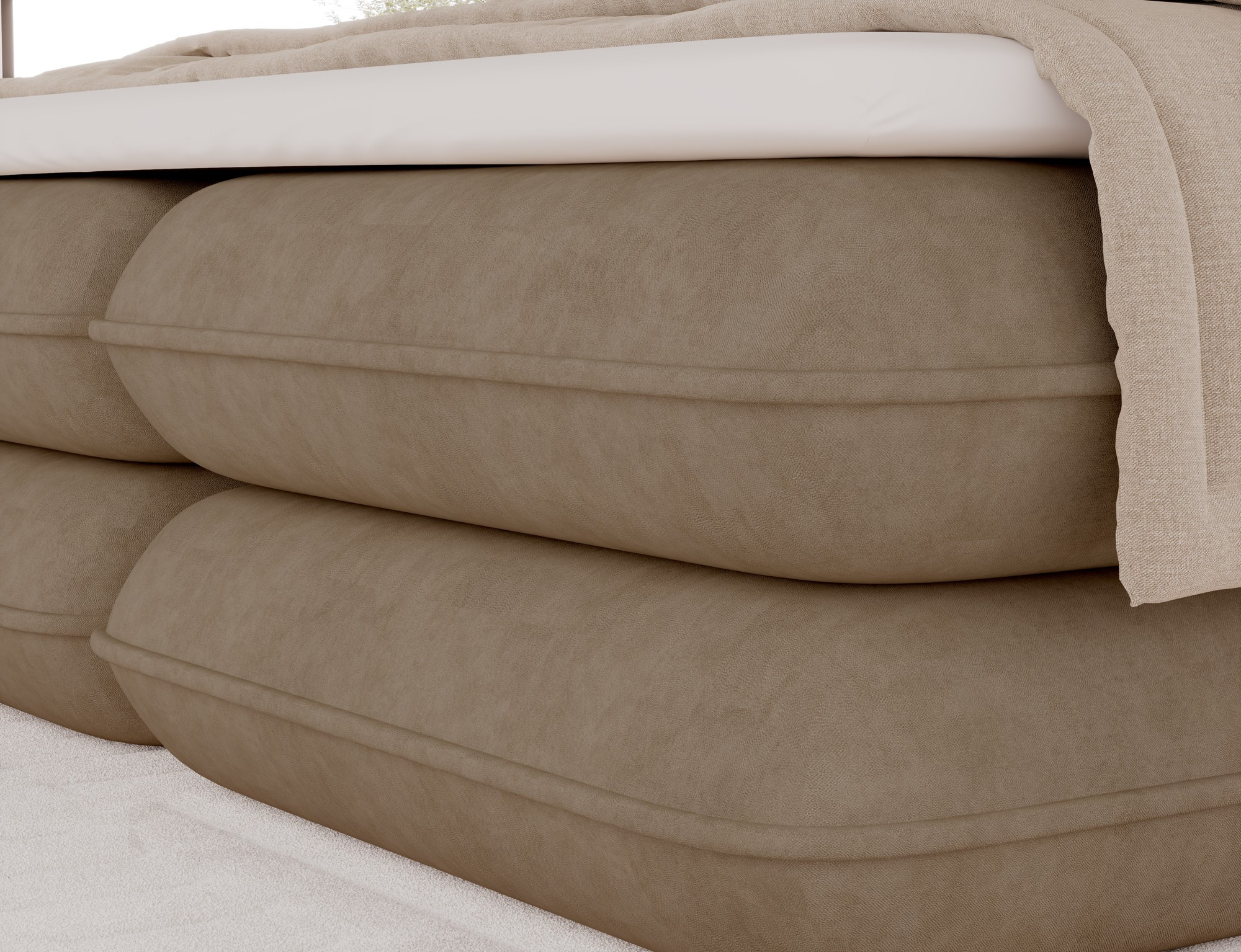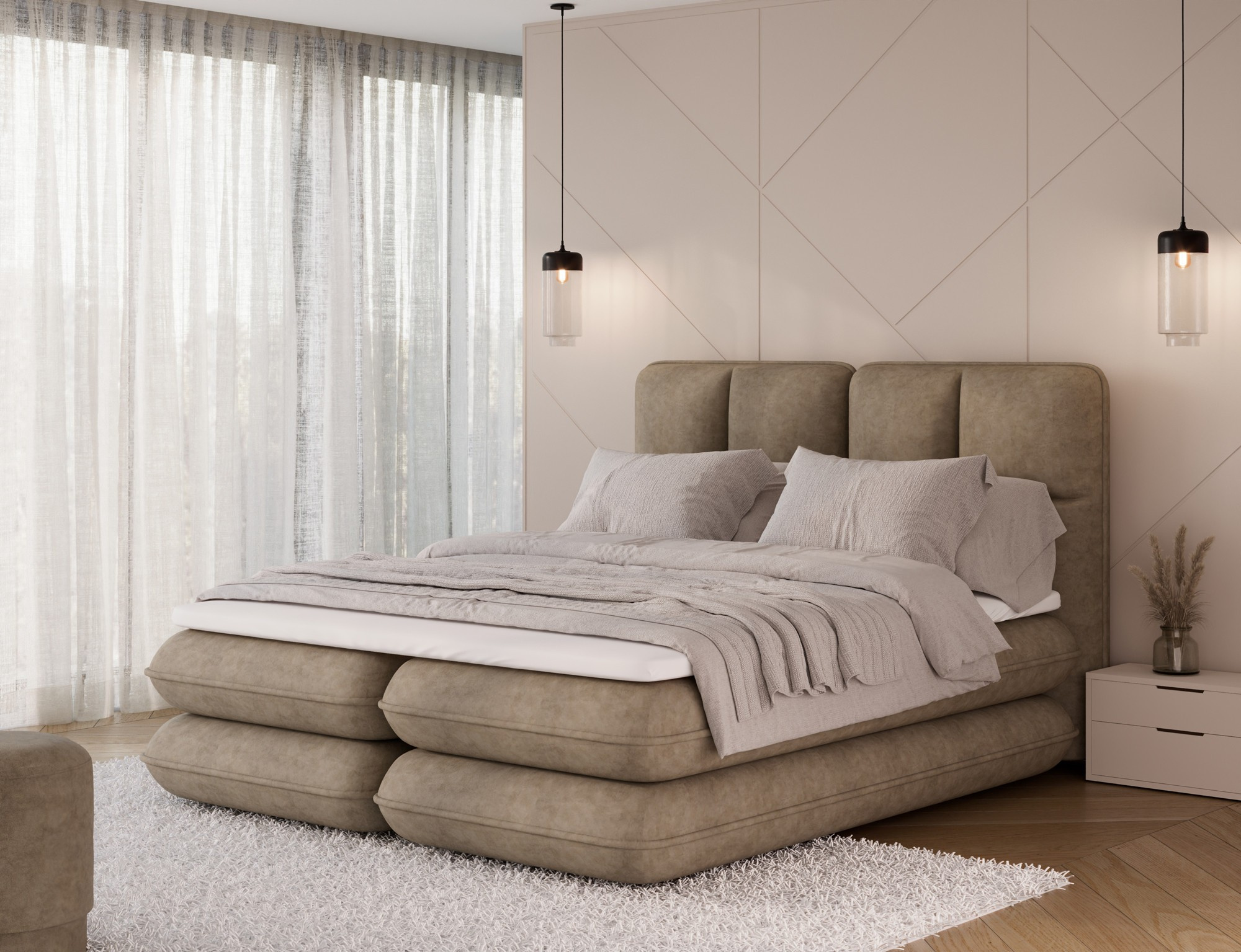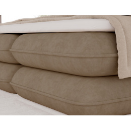 The Tonila bed is a modern and functional upholstered bed that combines sleeping comfort with practical solutions for the bedroom, making it an excellent choice for both contemporary and classic interiors; its solid construction with a height of 127 cm and a length of 235 cm ensures stability and comfortable back support, while the seat filling consisting of T2130 foam (storage box), bonell springs, and T2540 foam with a thickness of 2.5 cm provides proper body support and a high level of everyday comfort; the bed is equipped with a practical bedding storage compartment, which helps keep the bedroom organized, and the overall design is complemented by black furniture legs that add a modern and lightweight character; the Tonila model is available in three popular sizes: 140x200 cm, 160x200 cm, and 180x200 cm, allowing easy adjustment to the size of the room and individual needs, making it a comfortable, durable, and stylish bed for the bedroom.