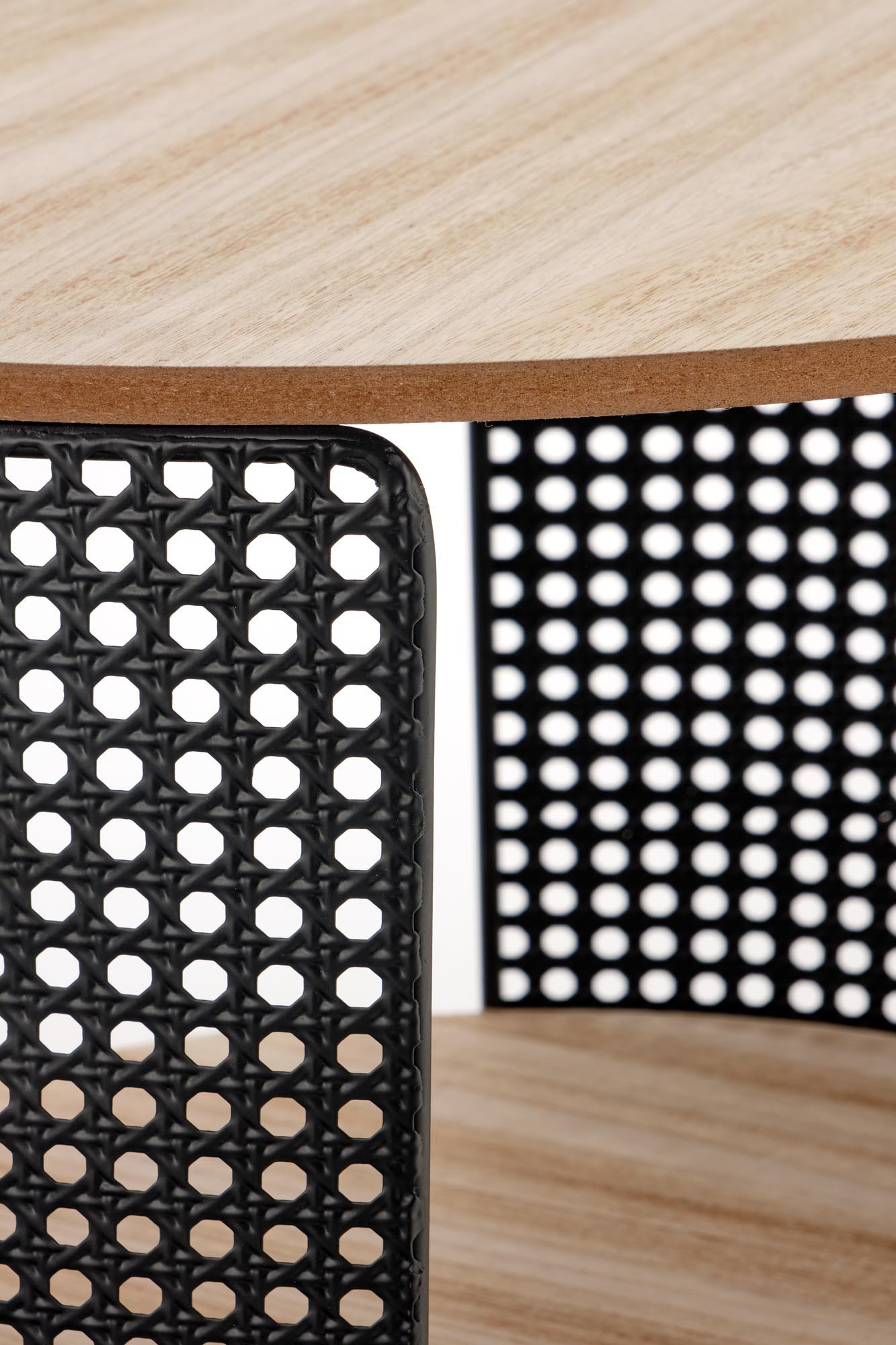 rozmery: fi 41/41 cm, materiál: mdf + prírodná dyha / oceľ, prášková farba, farba: prírodná - čierna