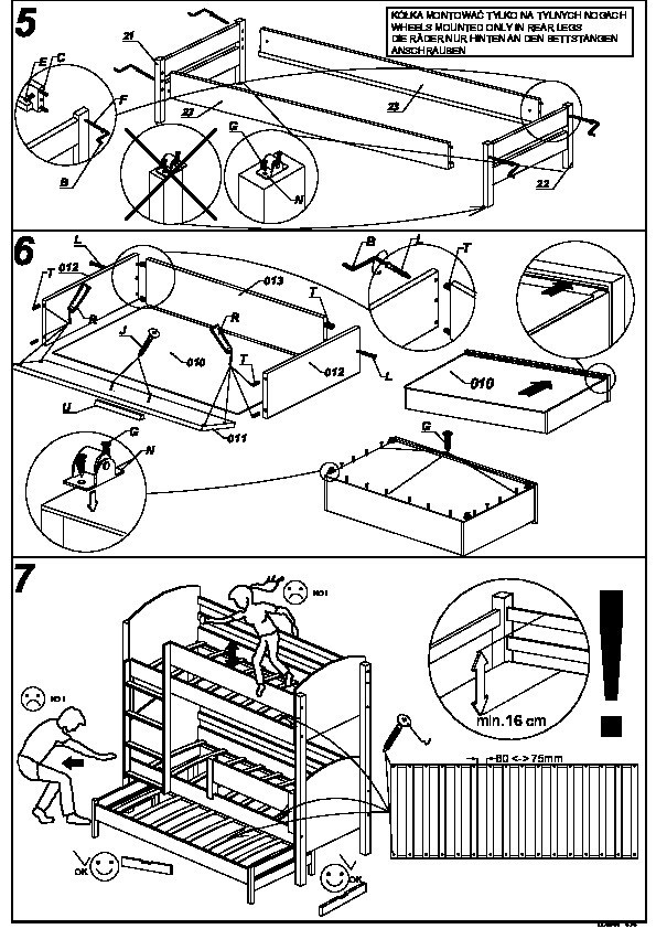 | Materiál | Posteľ vyrobená z borovicového dreva, spojená s laminovanou doskou 18 mm, vložky z dosky s ABS dyhou |