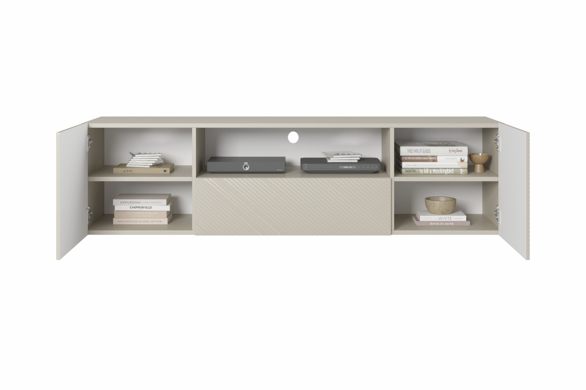 Závesná skrinka RTV Asha so zásuvkou a výklenkom 167 cm - kašmír, Šírka: 167, Výška: 44, Hĺbka: 40, Výška nožičiek: , Hĺbka dosky: , Montáž: