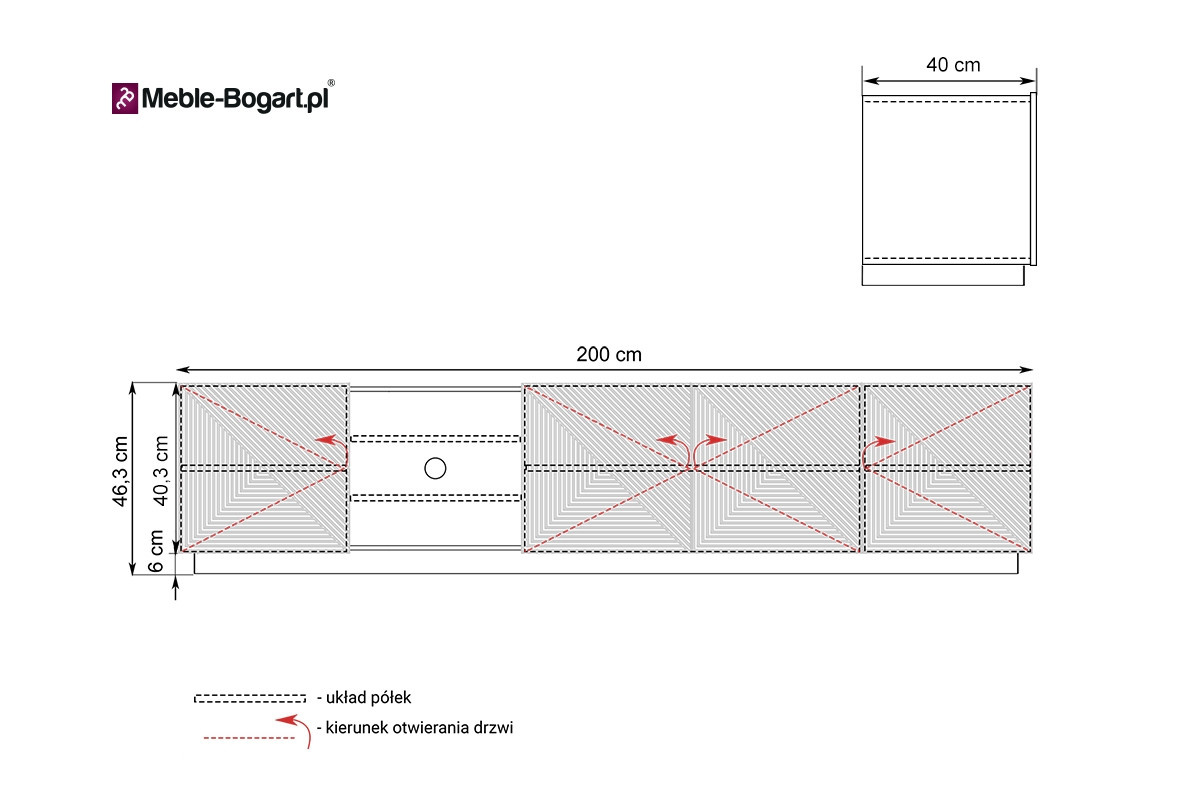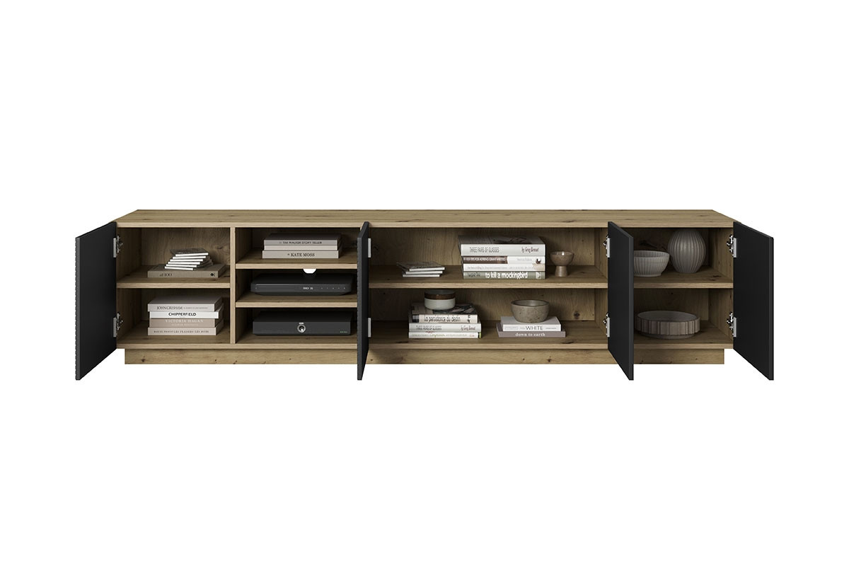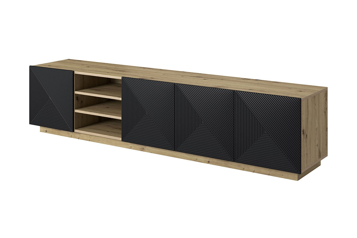RTV skrinka Asha 200 cm wneka - artisan /Čierny mat, šírka: 200, výška: 46, hĺbka: 40, montáž: vlastná.