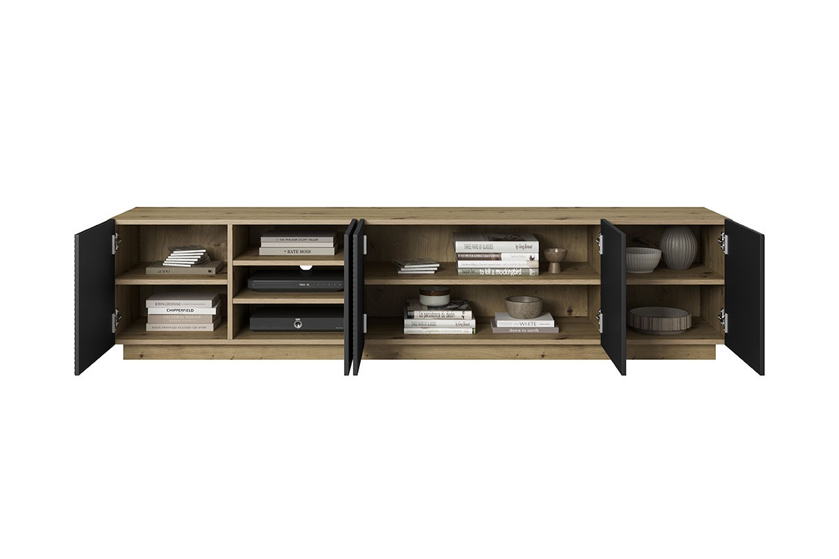 RTV skrinka Asha 200 cm - artisan /Čierny mat, šírka: 200, výška: 46, hĺbka: 40, Vlastná montáž.
