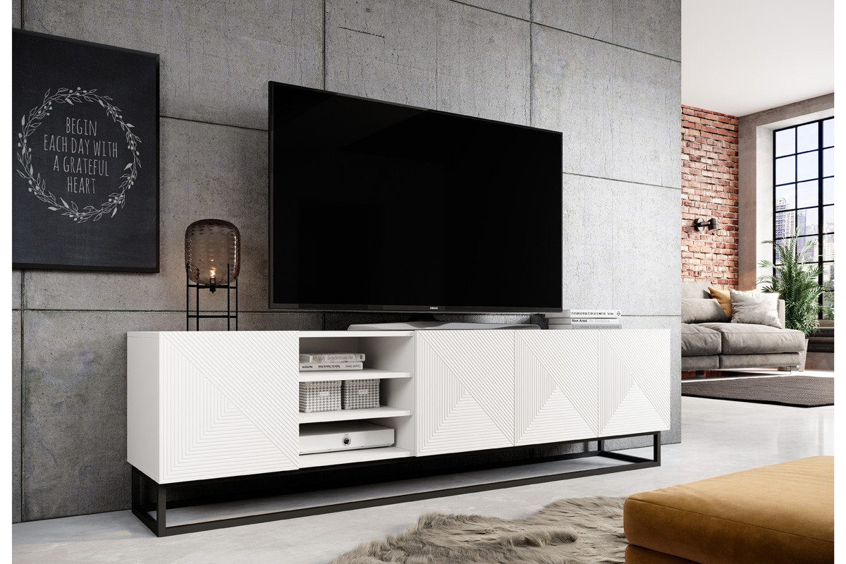 TV skrinka Asha 200 cm s výklenkom na kovovom podstavci - biela matná, šírka: 200, výška: 56, hĺbka: 40, vlastná montáž. TV skrinka Asha 200 cm s výklenkom na kovovom podstavci - biela matná