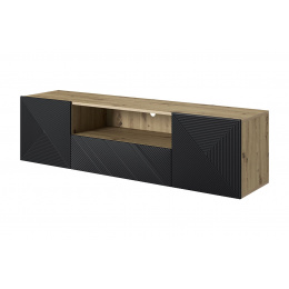 TV komoda Asha je vyrobená v atraktívnej kombinácii dubového dekoru artisan a čiernej matnej farby. Tento kontrast dodáva komode moderný a sofistikovaný vzhľad, ktorý sa hodí do každého interiéru. Dubový dekor prináša do vášho domova teplo a prírodný vzhľad, zatiaľ čo čierna matná farba pridáva nádych elegancie a luxusu.
