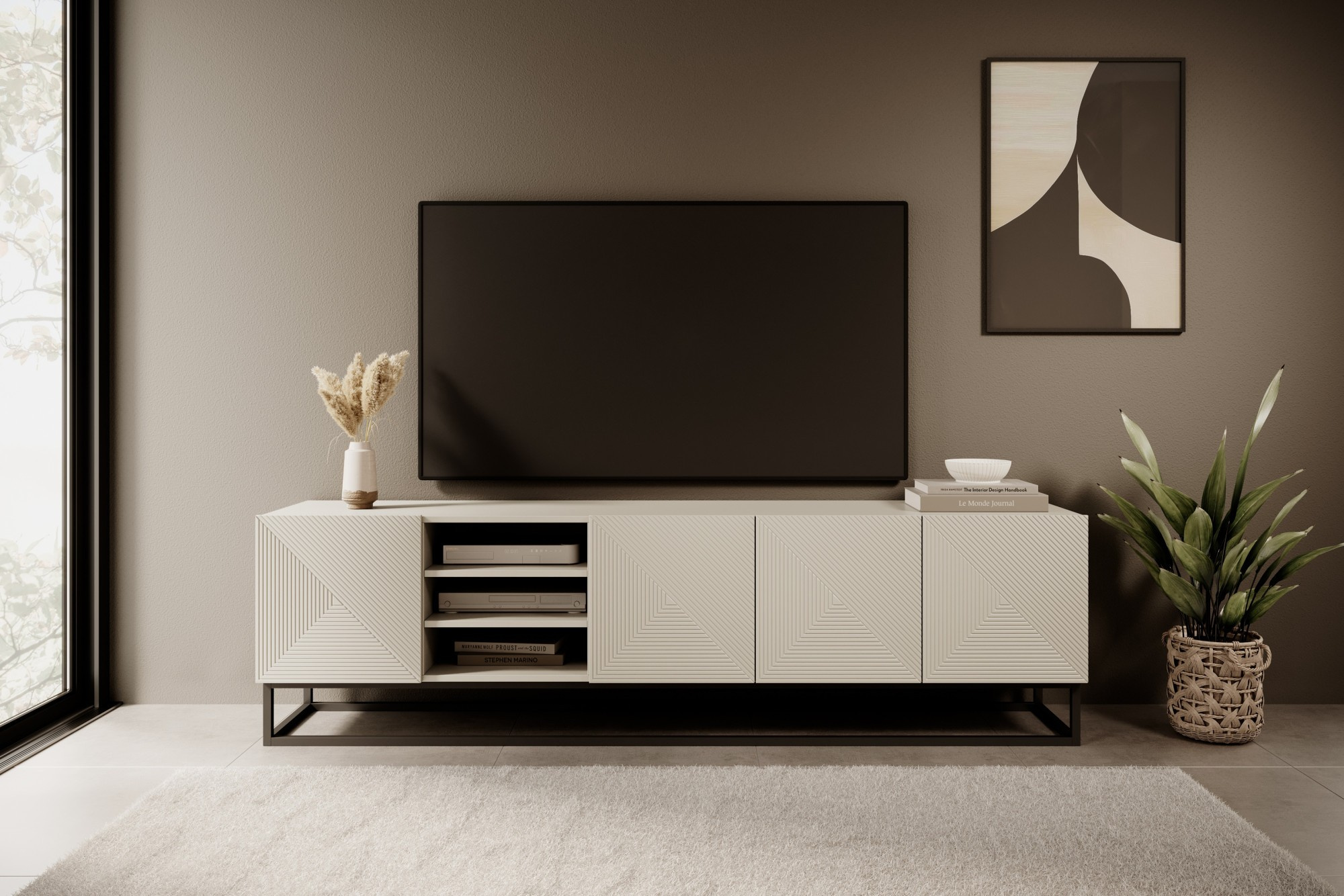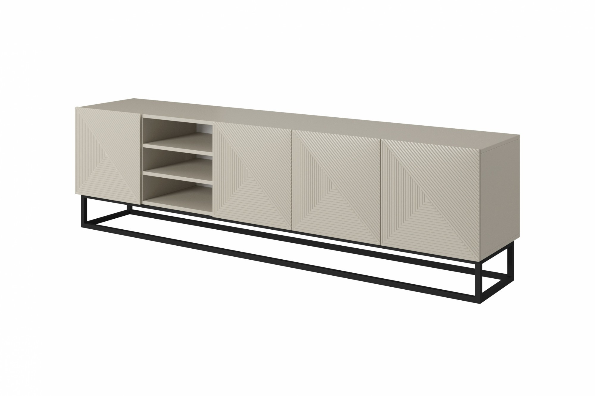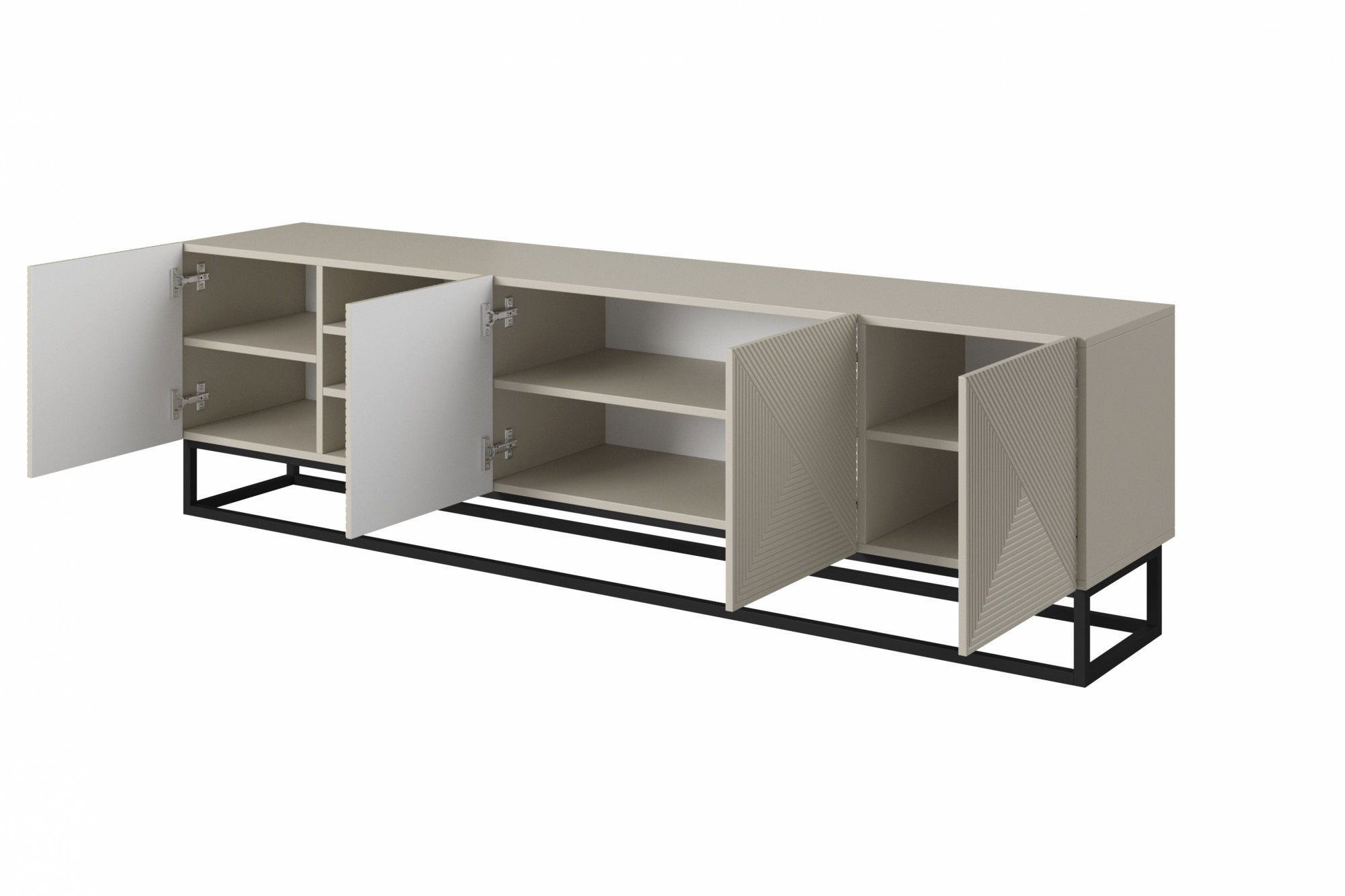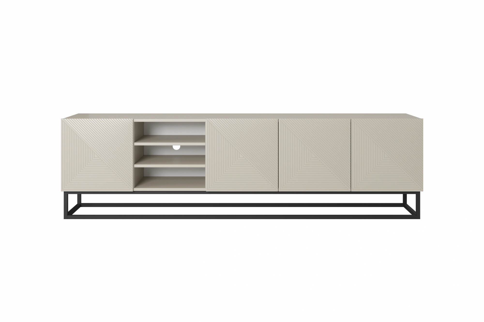 Skrinka RTV Asha ryhovaná s výklenkom a kovovým, čiernym rámom 200 cm - kašmír, Šírka: 200, Výška: 56, Hĺbka: 40, Výška nožičiek: 16, Hĺbka dosky: , Montáž: