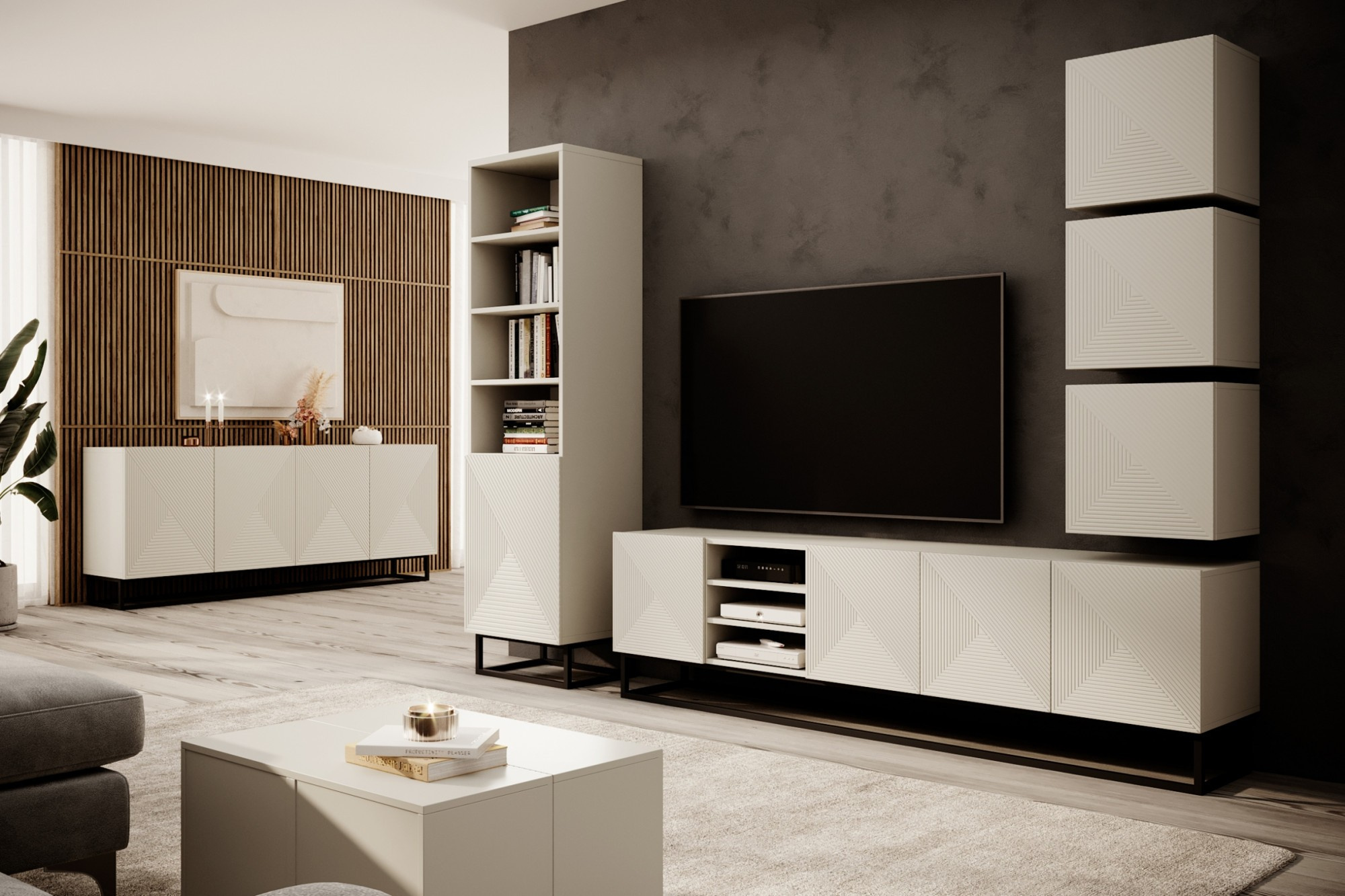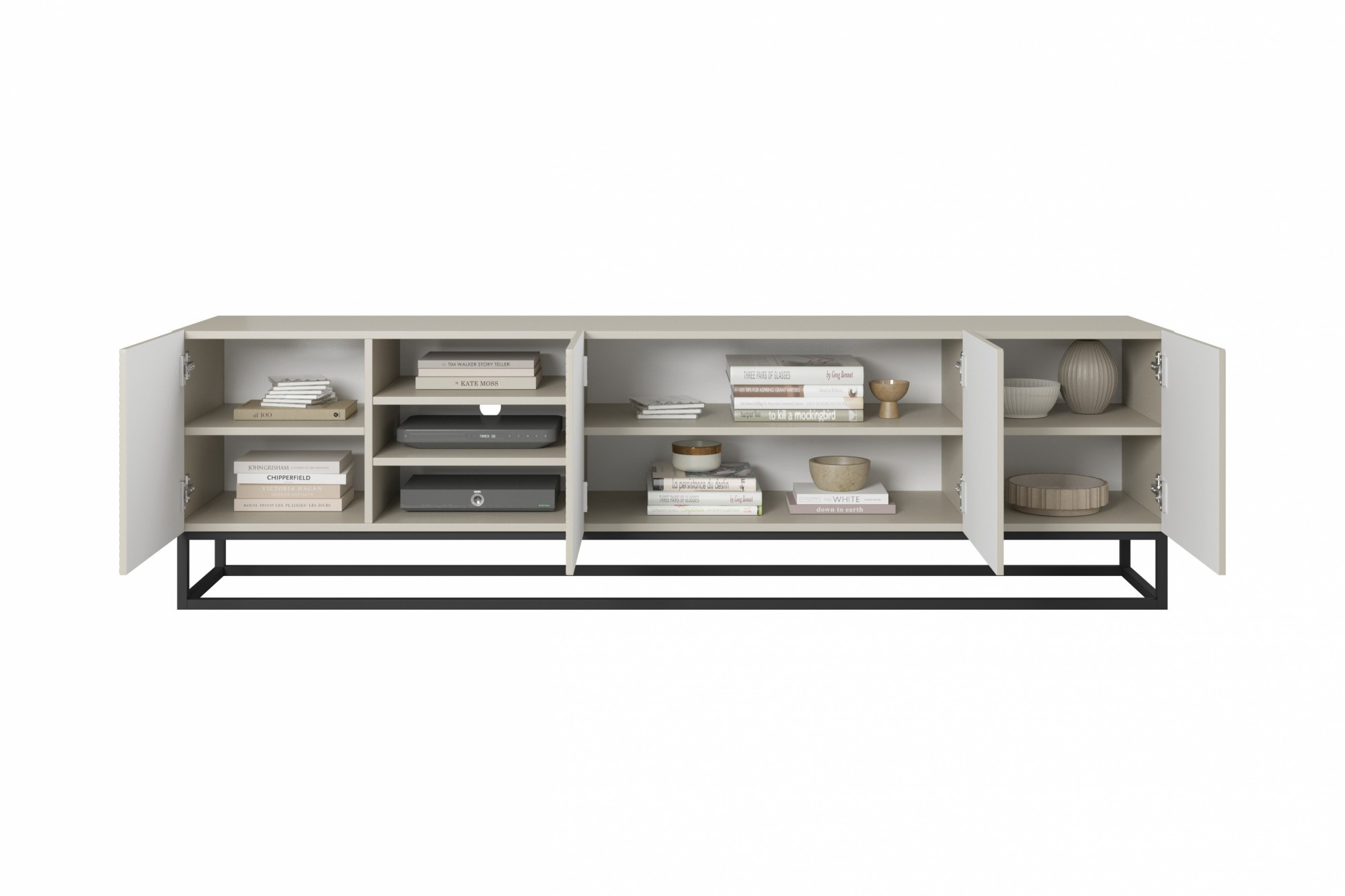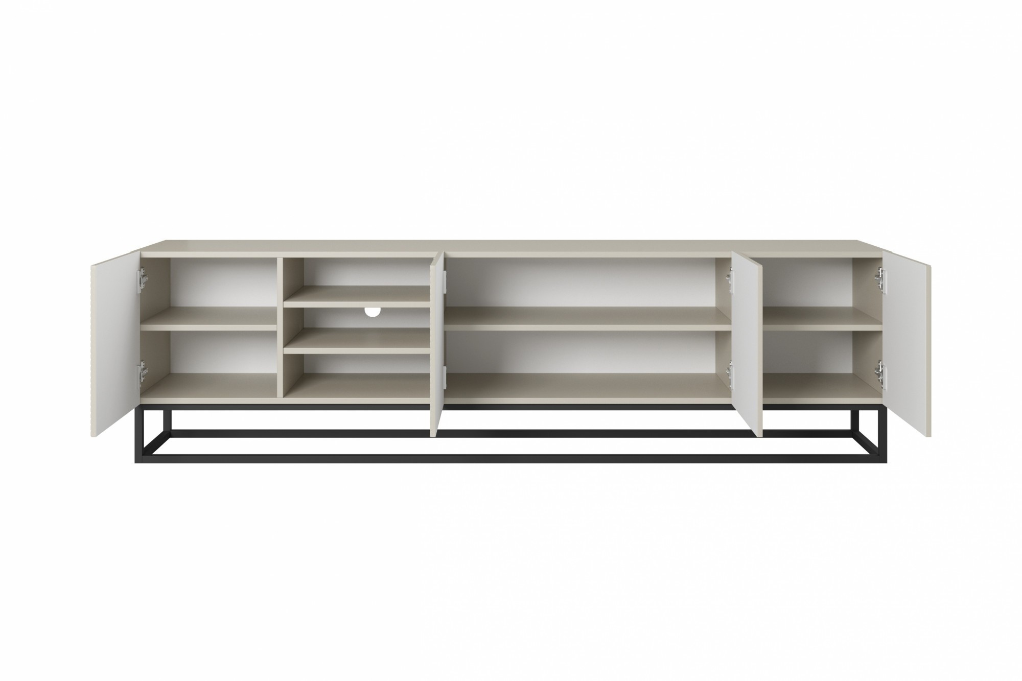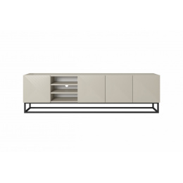 Skrinka RTV Asha ryhovaná s výklenkom a kovovým, čiernym rámom 200 cm - kašmír, Šírka: 200, Výška: 56, Hĺbka: 40, Výška nožičiek: 16, Hĺbka dosky: , Montáž:
