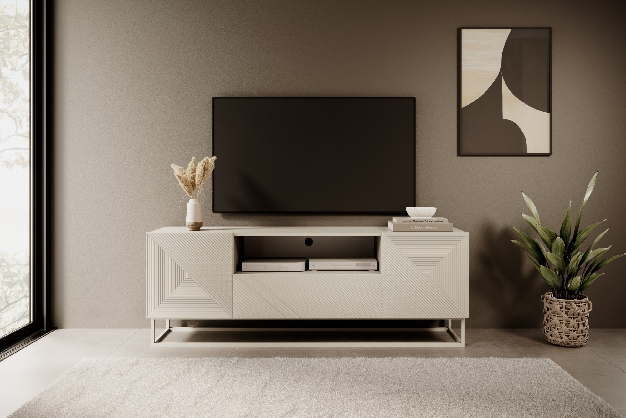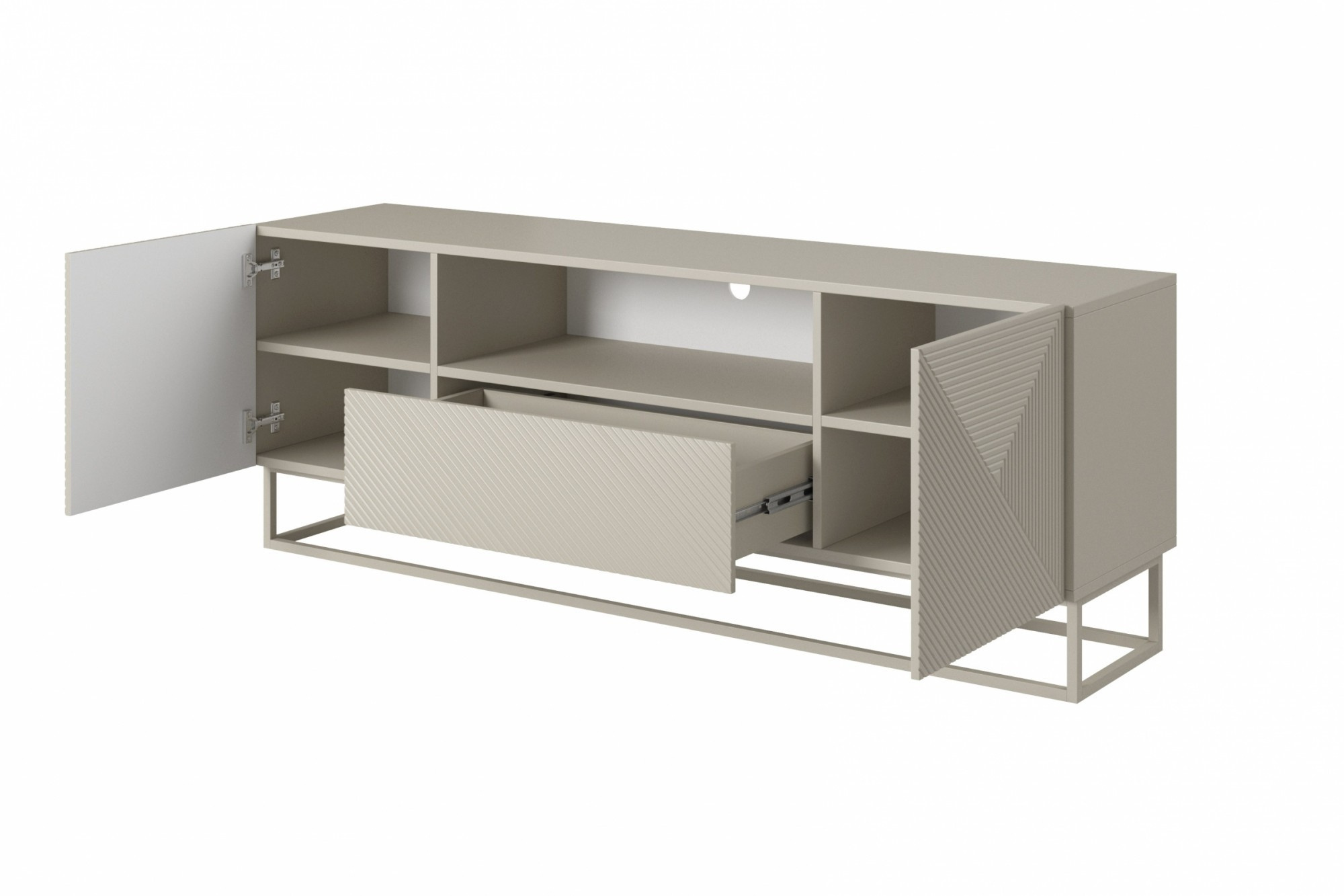 RTV skrinka Asha so zásuvkou a kovovým, kašmírovým rámom 167 cm - kašmír, Šírka: 167, Výška: 60, Hĺbka: 40, Výška nožičiek: 16, Hĺbka dosky: , Montáž: