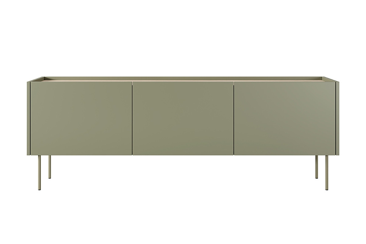 RTV skrinka s tromi dvierkami a dvojitým kontajnerom Desin 170 3D2SZ - Oliva / Dub nagano, šírka: 170, výška: 60, hĺbka: 40, montáž: vlastná. Truhlica RTV na čiernych kovových nohách.