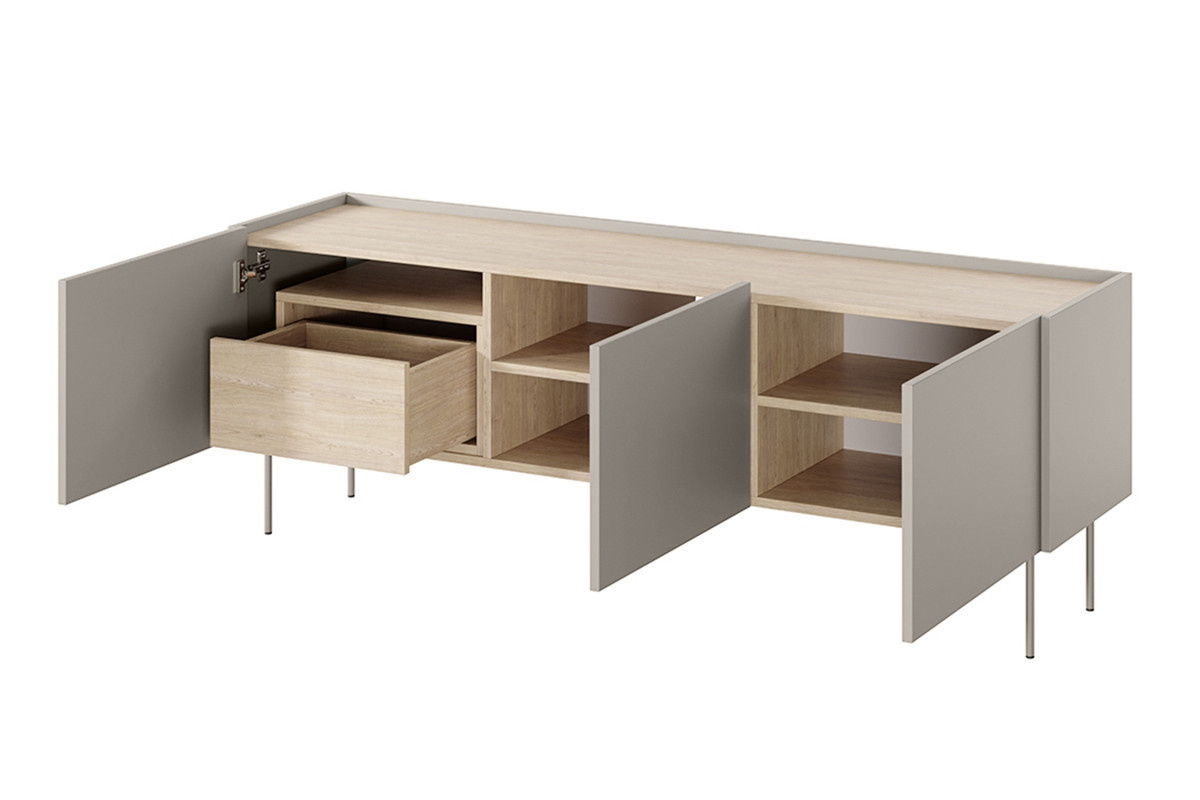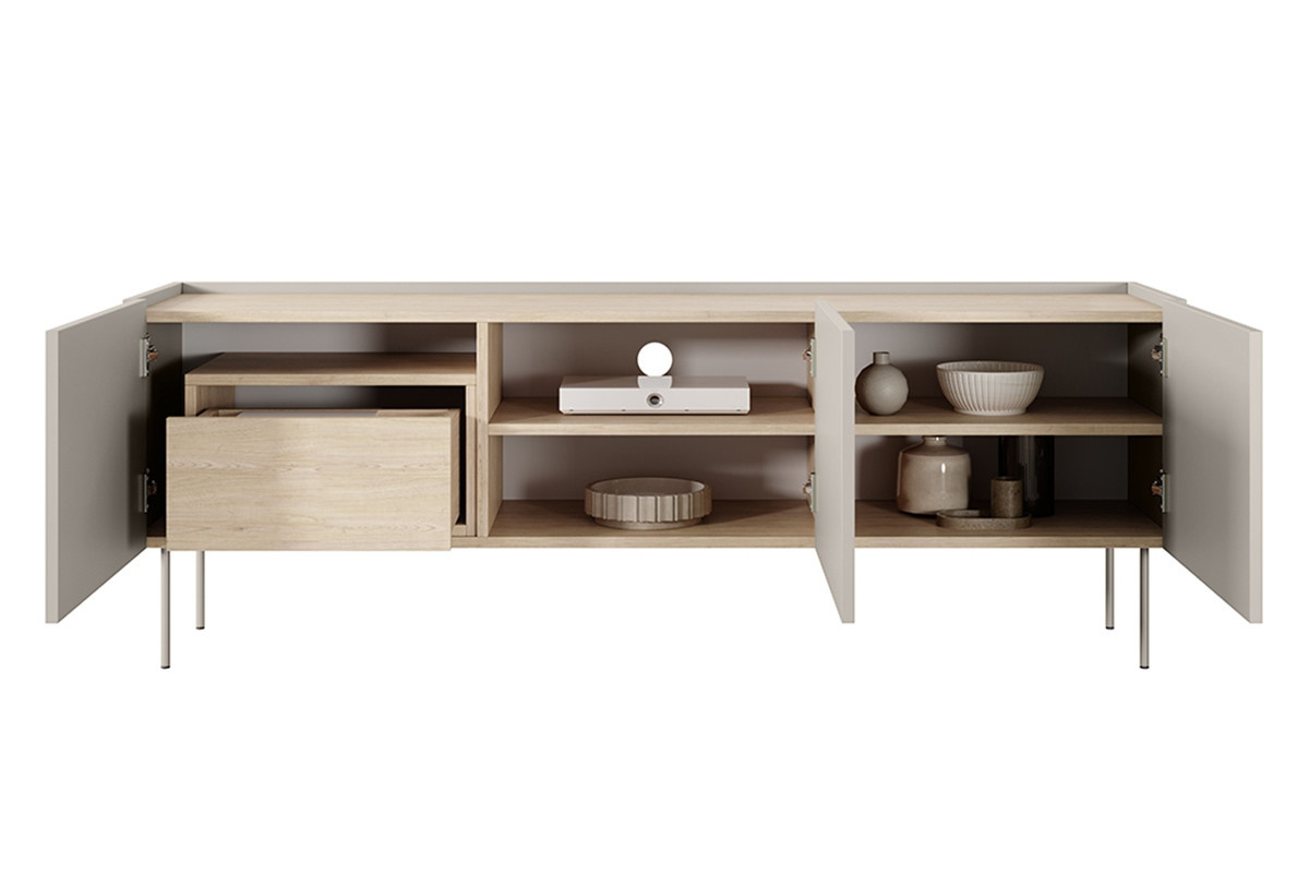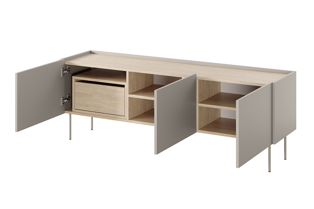 Trojdverová RTV skriňa s kontajnerom Desin 170 3D1SZ - kašmír / dub nagano, šírka: 170, výška: 60, hĺbka: 40, montáž: svojpomocne. Truhlica RTV na čiernych kovových nohách.