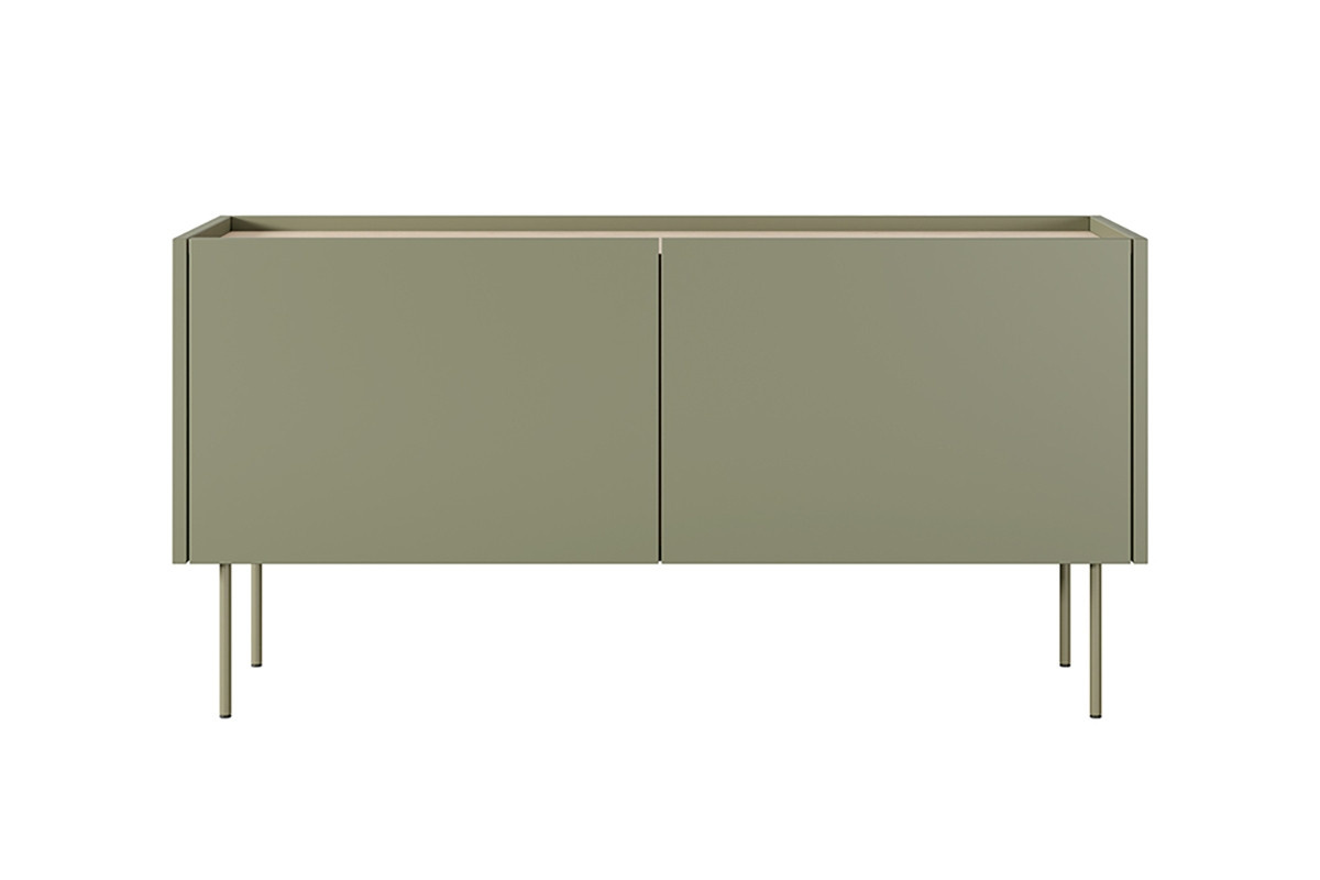 RTV skrinka s dvomi dvierkami Desin 120 2D - Olive / Dub nagano, šírka: 120, výška: 60, hĺbka: 40, montáž. Truhlica RTV na čiernych kovových nohách.
