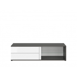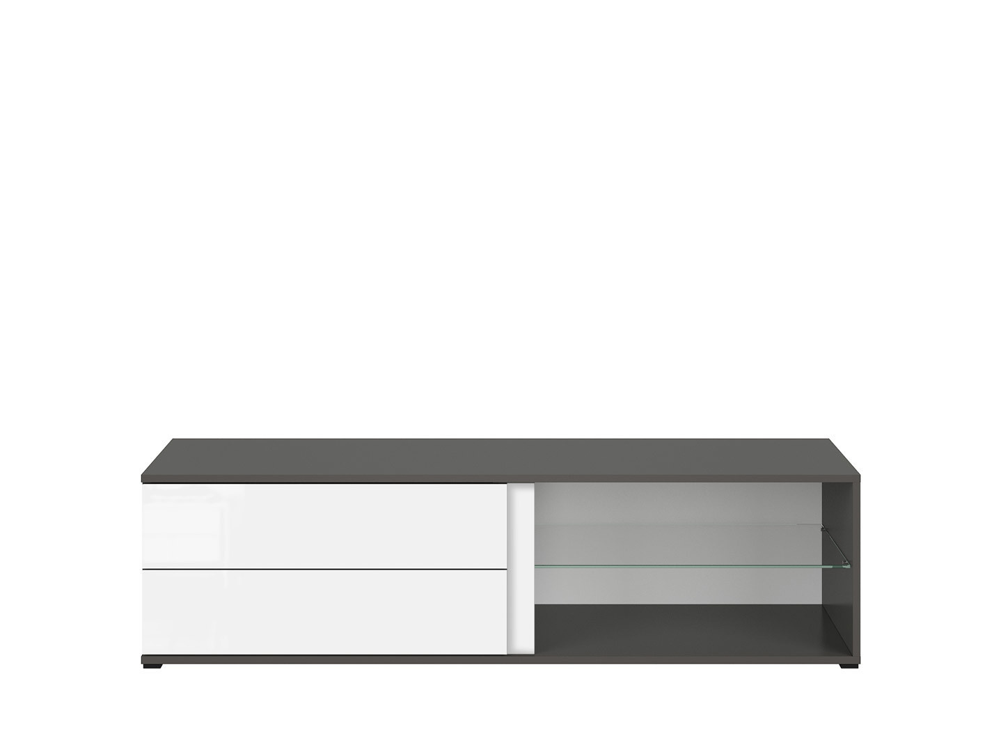 V žiadnej obývačke by nemal chýbať televízny stolík. Moderný televízny stolík Graphic II (RTV2S/142/A) osloví aj tých najnáročnejších. Využiť môžete 2 veľké úložné zásuvky a otvorenú sklenenú policu, ktorá je štýlovo zvýraznená LED osvetlením. Zásuvky sú na valčekových koľajničkách.