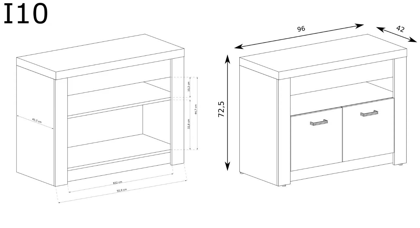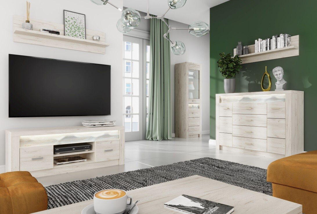Malá skrinka RTV zo zbierky Indianapolis. Ideálne pre malé miestnosti. Má jednu skrinku s priestrannou policou uprostred. Polička nad ním je ideálna na dekodér alebo malé ozdoby. Kovové rukoväte svedčia o tom, že bol zohľadnený každý detail. Hodí sa do mnohých aranžmánov a je k dispozícii v troch farbách.
