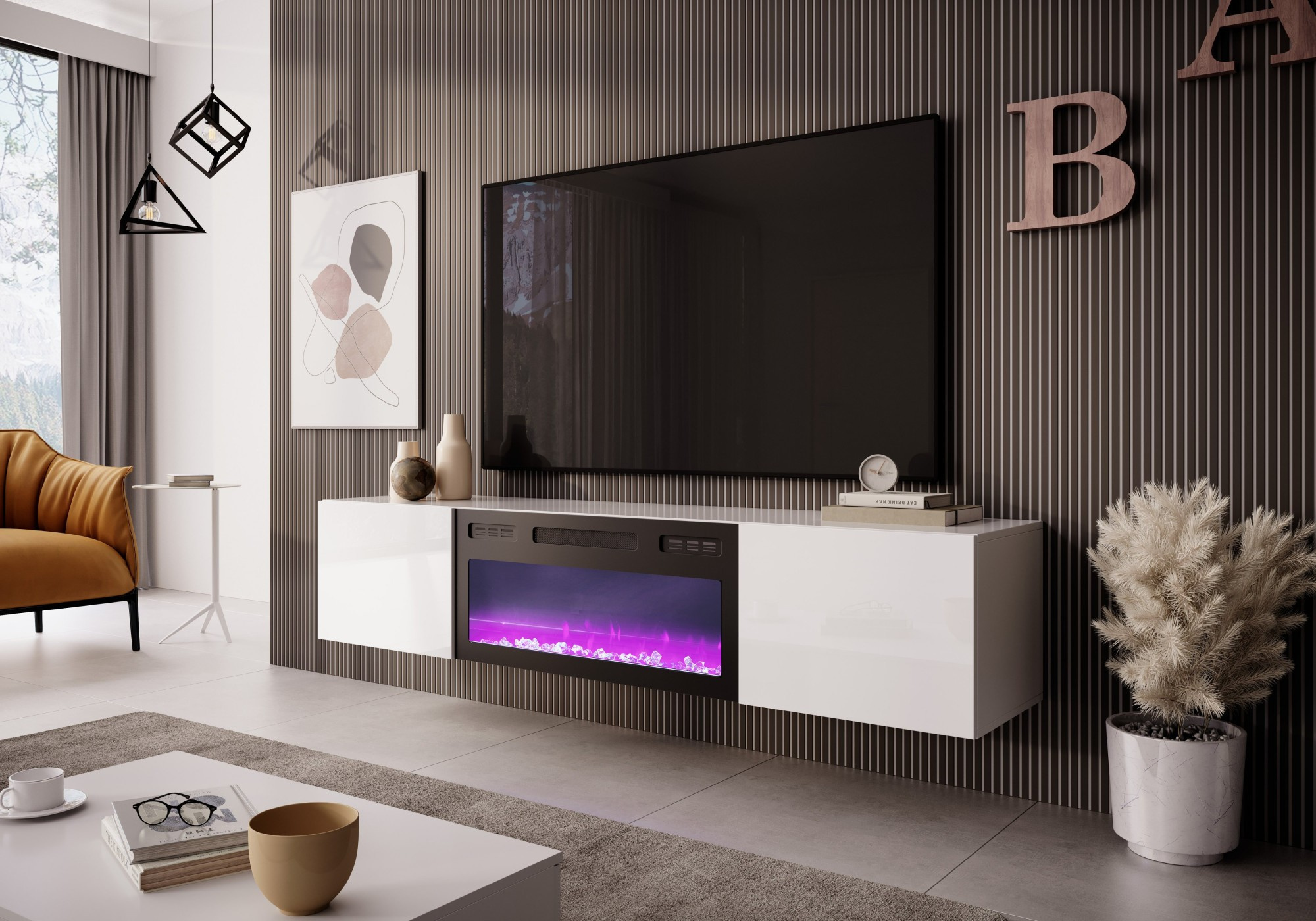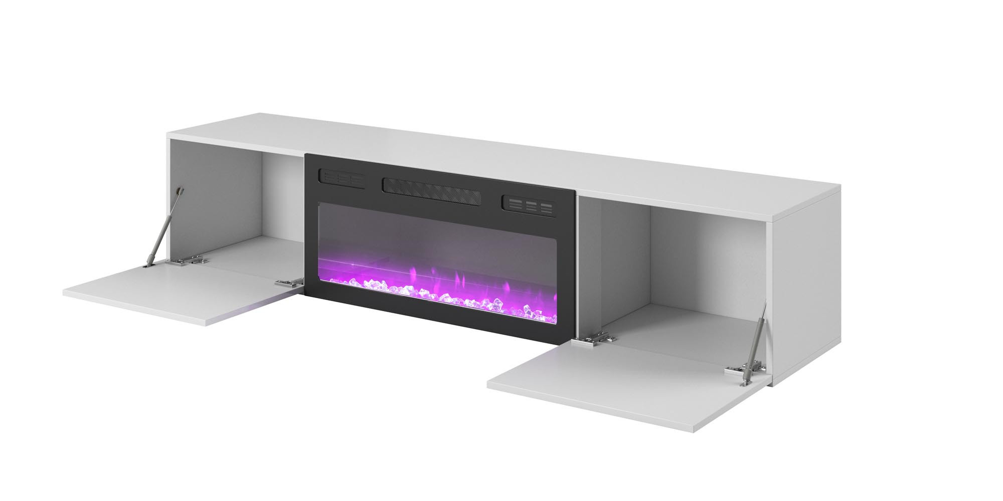 TV komoda LIVO RTV 180 závesný s krbom, biely