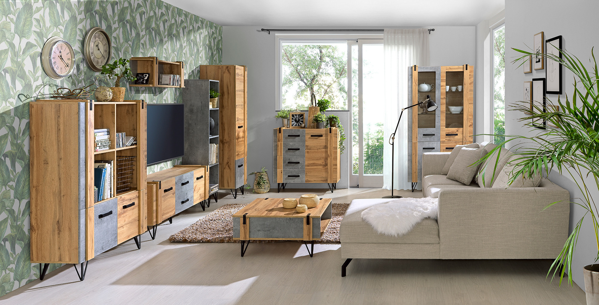 Nábytok LOFTER je moderný nábytok navrhnutý v industriálnom štýle. Výrobca venoval pozornosť detailom a kvalite nábytku. Na výrobu tohto systému použil laminované nábytkové dosky s ABS hranami, ktoré majú zvýšenú odolnosť proti poškriabaniu, teplu a vlhkosti.