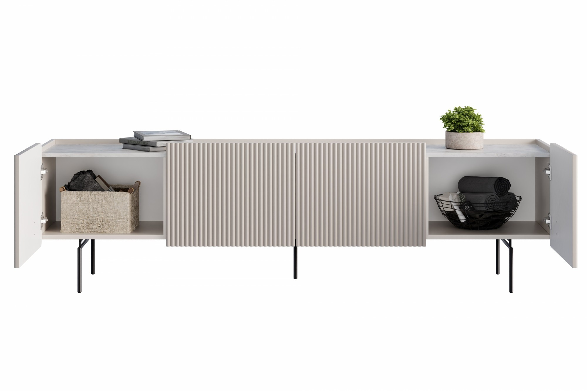 Skrinka RTV Malmi 200 cm - kašmír / crema bianca / čierne nožičky, Šírka: 200, Výška: 57, Hĺbka: 42, Výška nožičiek: 17, Hĺbka dosky: , Montáž: