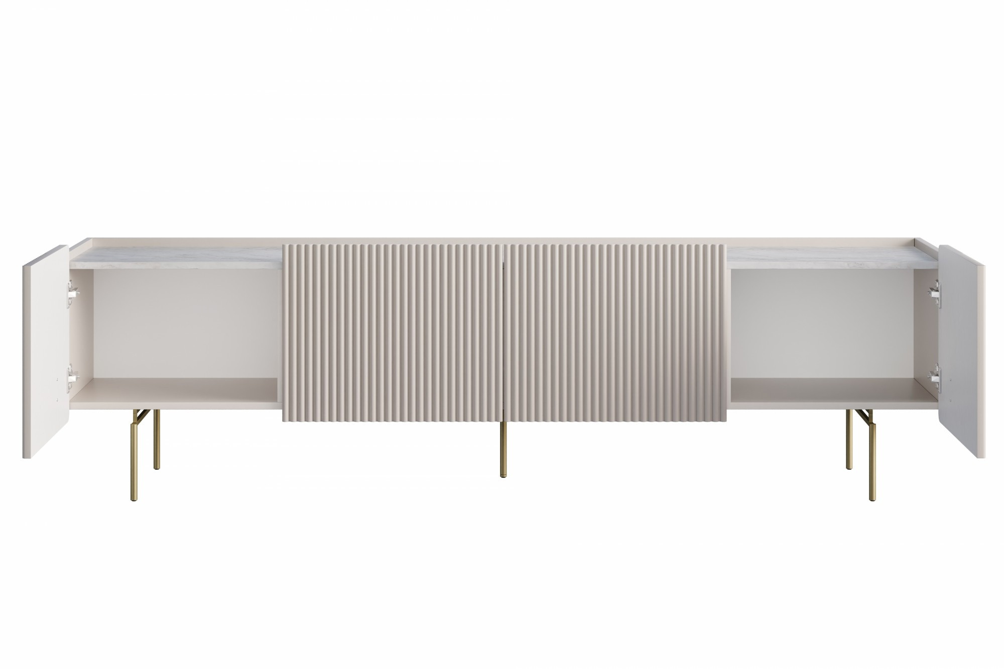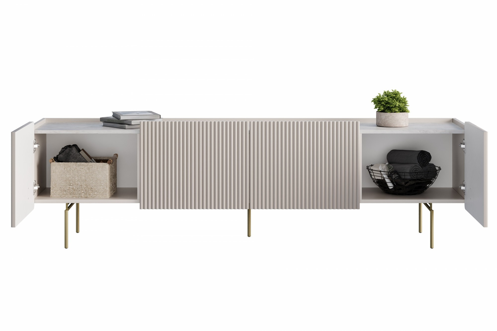 Skrinka RTV Malmi 200 cm - kašmír / crema bianca / zlaté nožičky, Šírka: 200, Výška: 57, Hĺbka: 42, Výška nožičiek: 17, Hĺbka dosky: , Montáž: