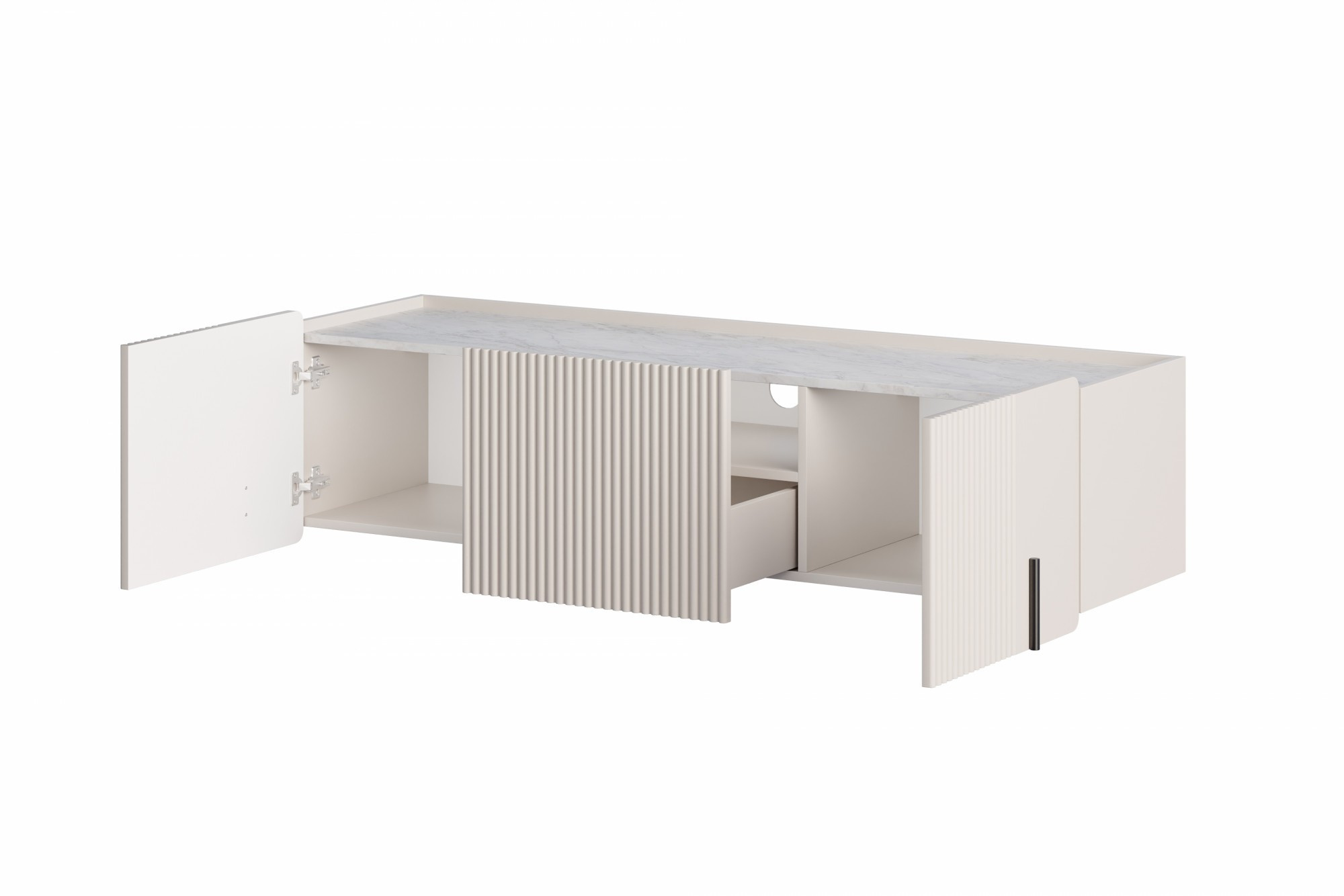Szafka RTV Malmi 150 cm visiaca - kašmír / crema bianca / čierna, Šírka: 150, Výška: 40, Hĺbka: 42, Výška nožičiek: , Hĺbka dosky: , Montáž: