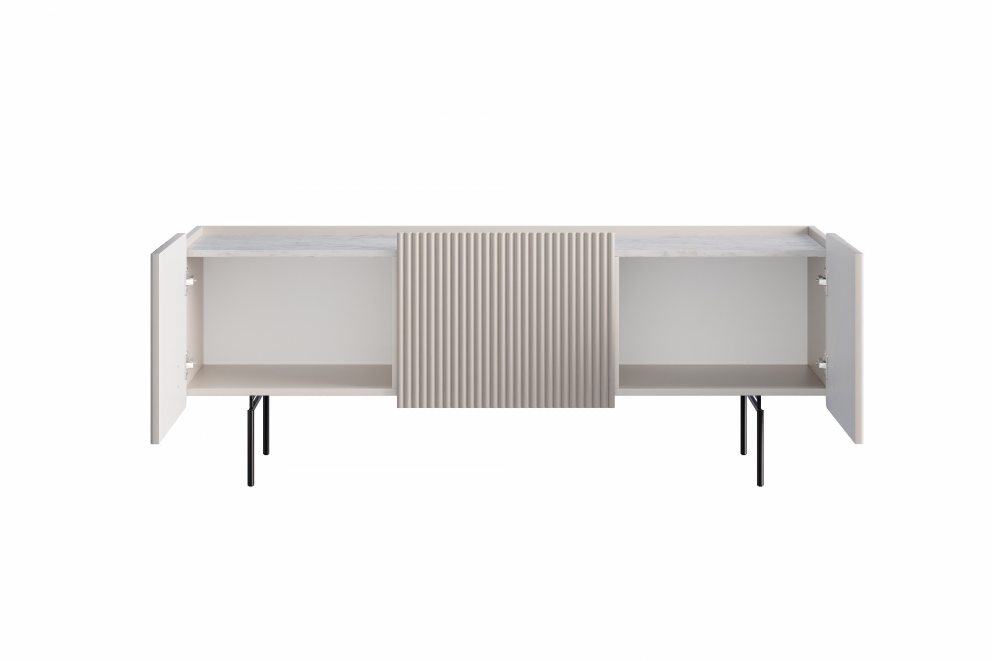 RTV skrinka Malmi 150 cm - kašmír / crema bianca / čierne nožičky, Šírka: 150, Výška: 57, Hĺbka: 42, Výška nožičiek: 17,5, Hĺbka dosky: , Montáž: