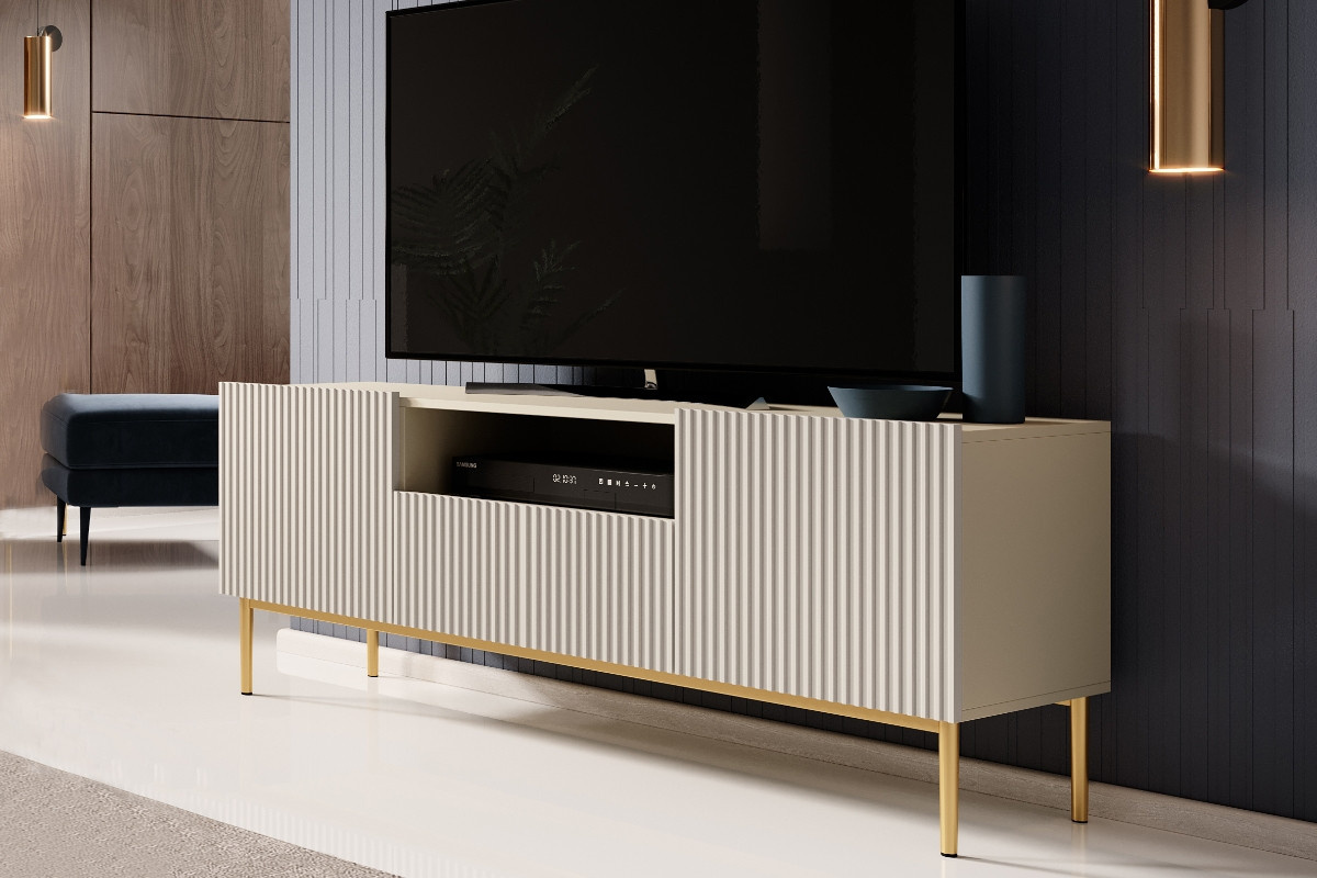 TV skrinka Nicole 150 cm s výklenkom - kašmír / zlaté nohy, šírka: 150, výška: 60, hĺbka: 45, montáž: svojpomocne.