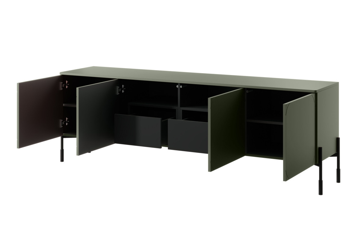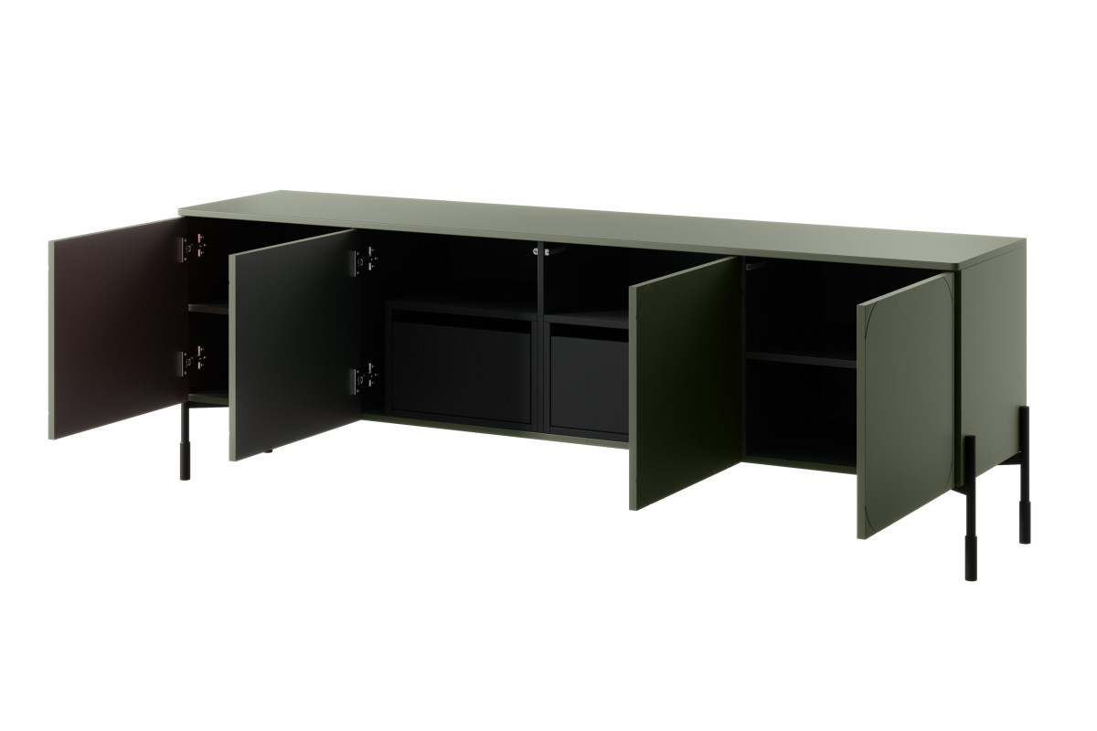 RTV skriňa štvordverová podwojnym kontenerkiem Sonatia 200 - Oliva , šírka: 200, výška: 65, hĺbka: 45, montáž: vlastná. Elegantná komoda v bielom lesku.