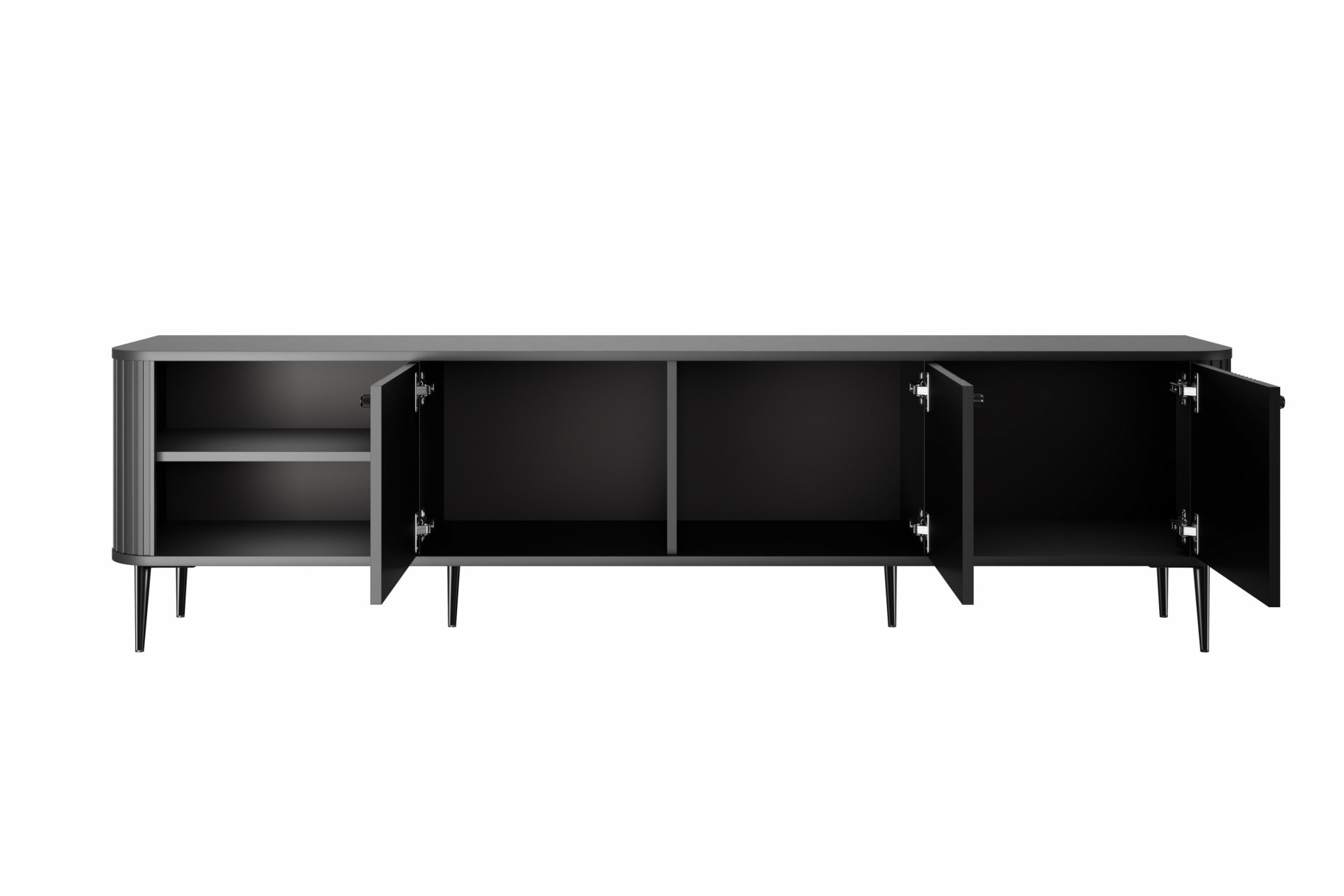 Skrinka RTV Vesper 3D 187 cm - čierna / čierne nohy, Šírka: 187, Výška: 51, Hĺbka: 38, Výška nožičiek: 15, Hĺbka dosky: , Montáž: