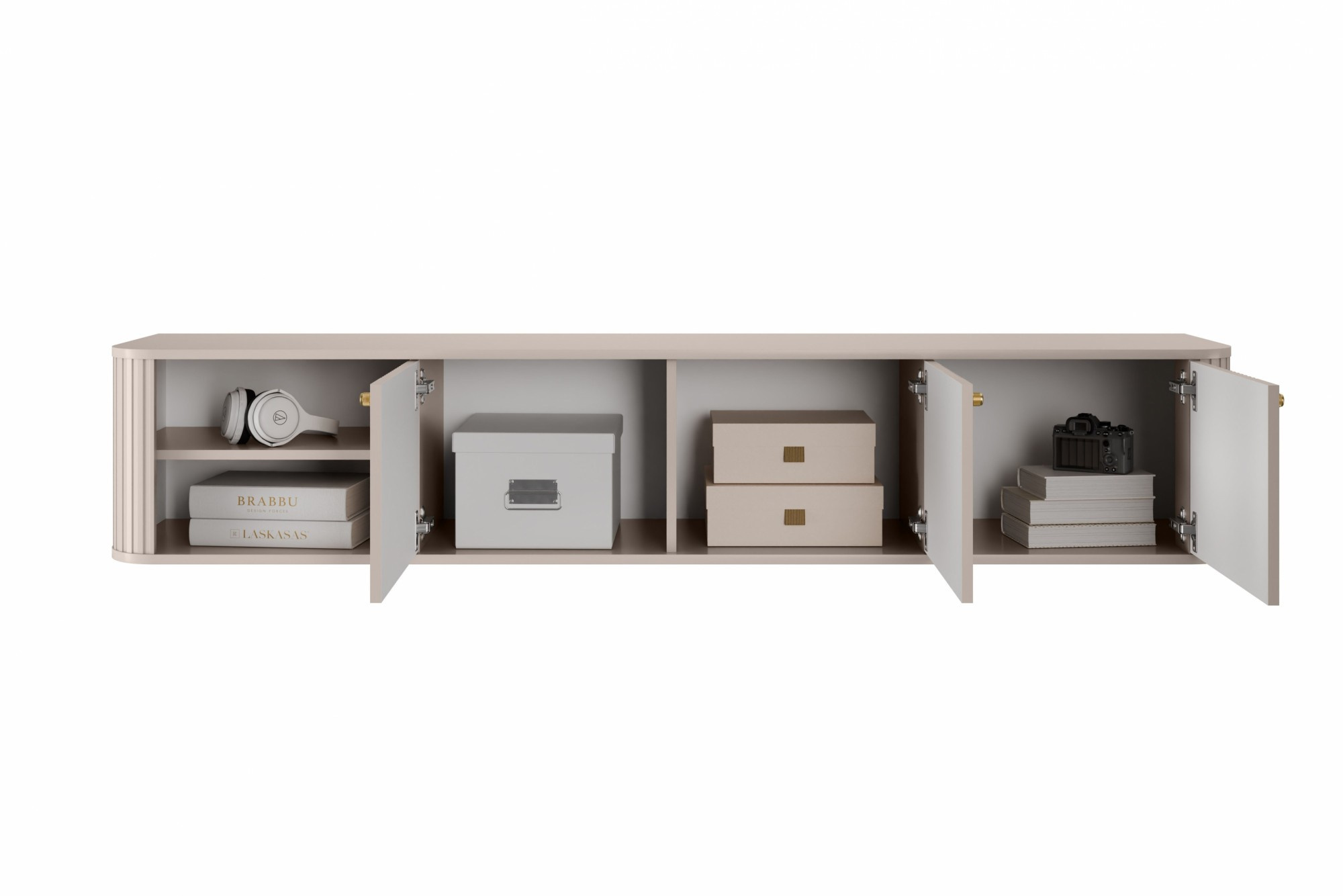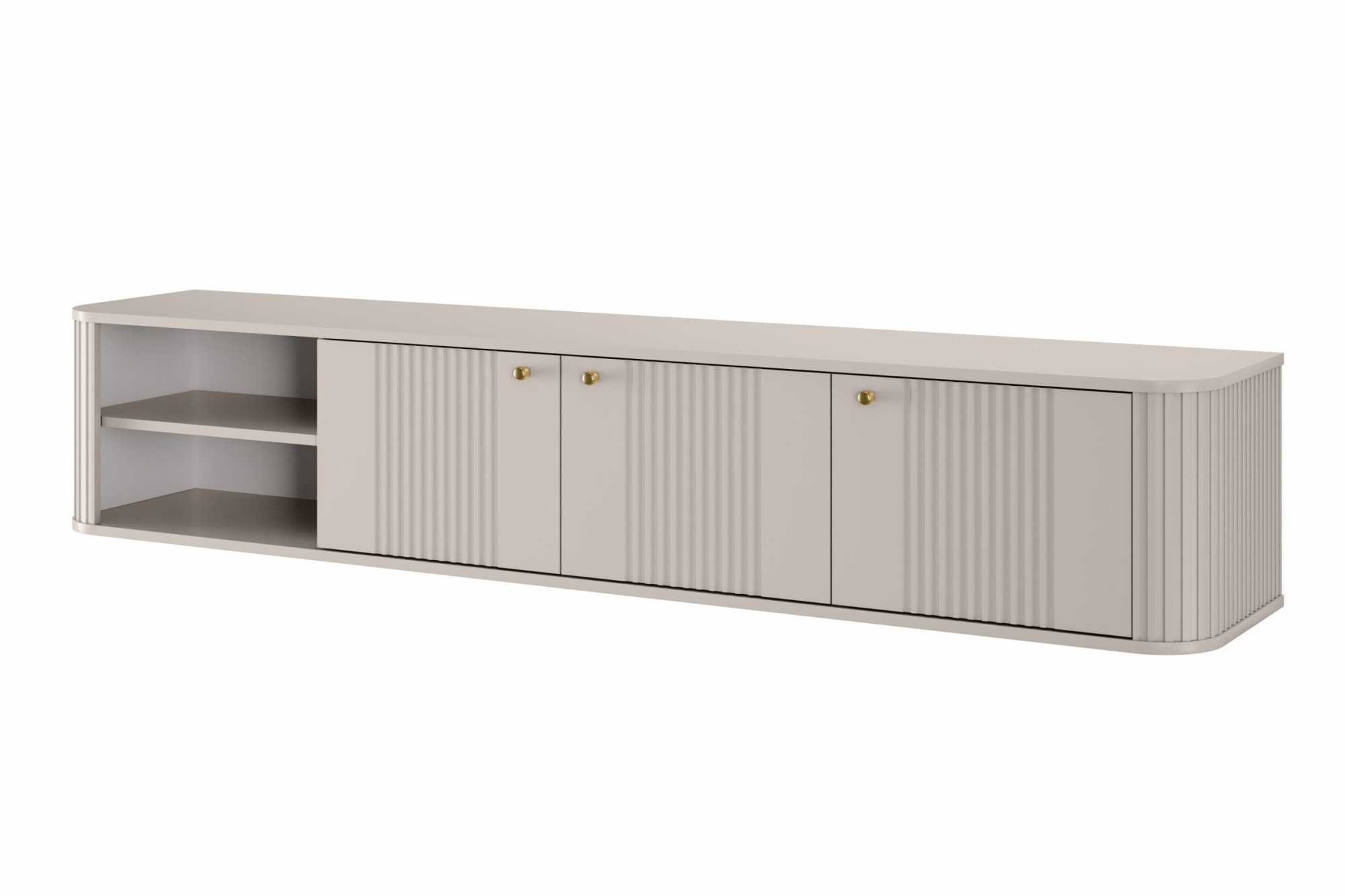Závesná TV skrinka Vesper 3D 187 cm - kašmír / zlaté úchyty, Šírka: 187, Výška: 36, Hĺbka: 38, Výška nožičiek: , Hĺbka dosky: , Montáž: