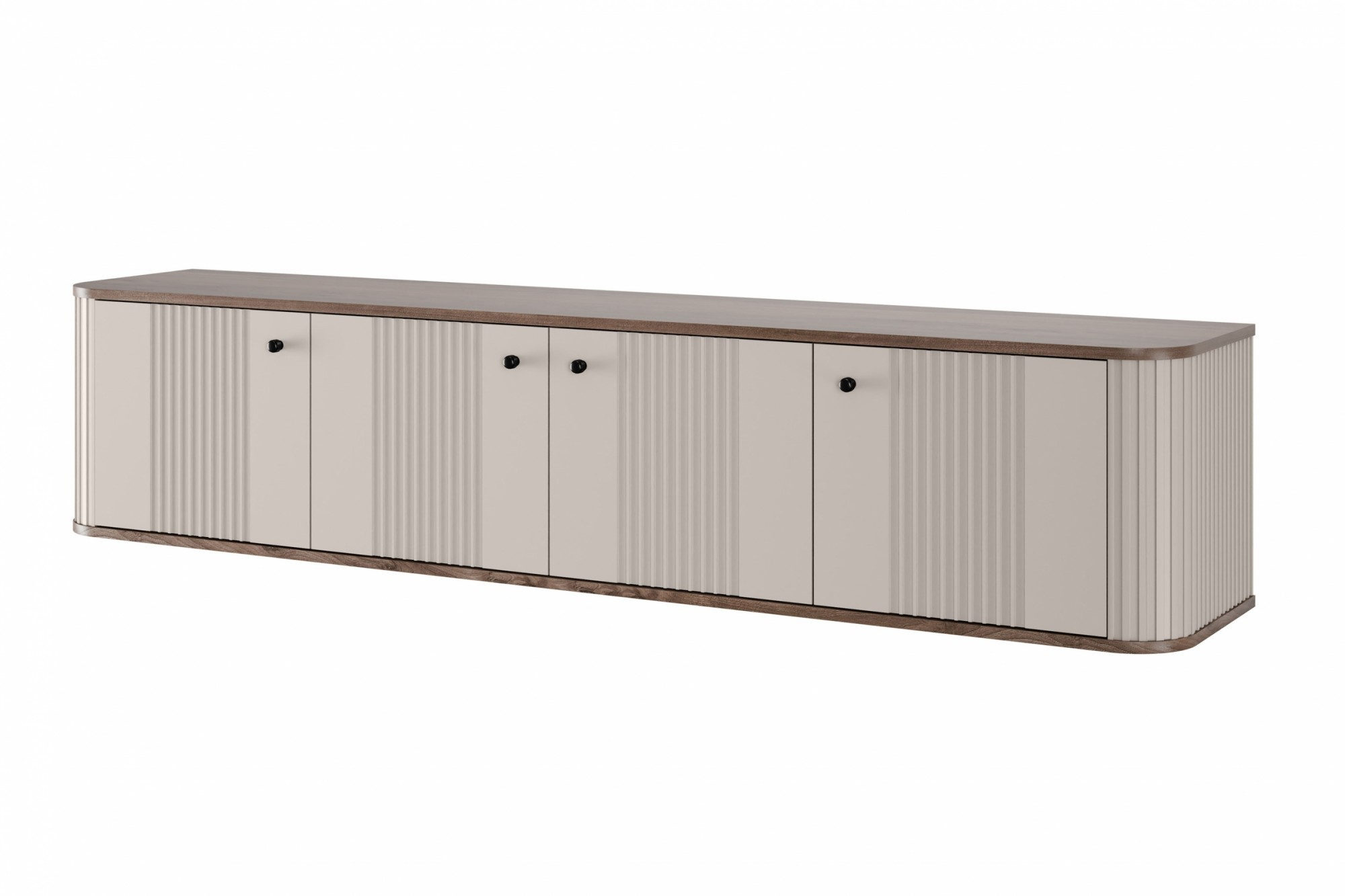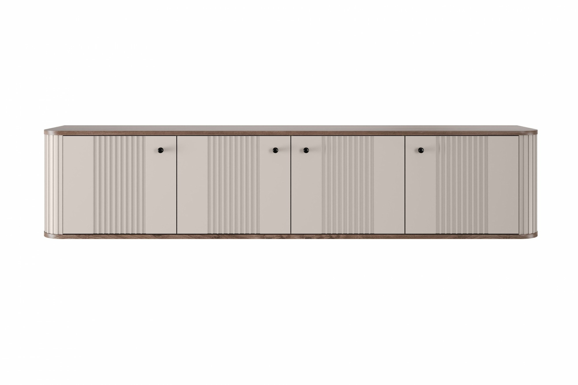 Závesná TV skrinka Vesper 4D 187 cm - kašmír / orech / čierne úchyty, Šírka: 187, Výška: 36, Hĺbka: 38, Výška nožičiek: , Hĺbka dosky: , Montáž: