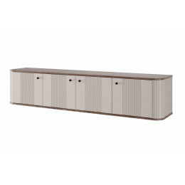 TV komoda Vesper 4D, kašmír / orech / čierne úchyty