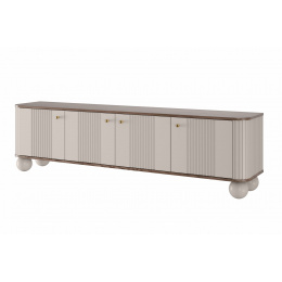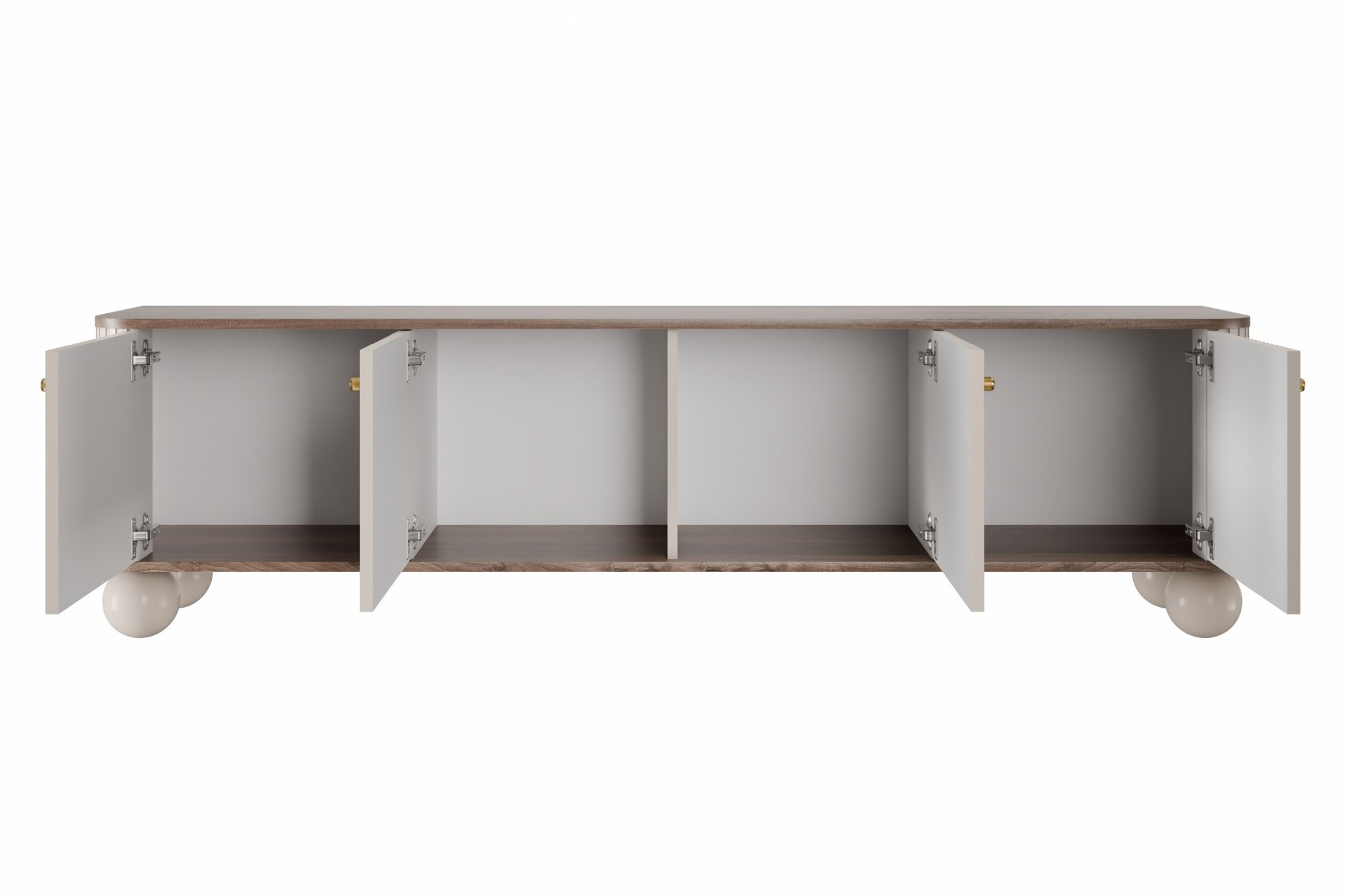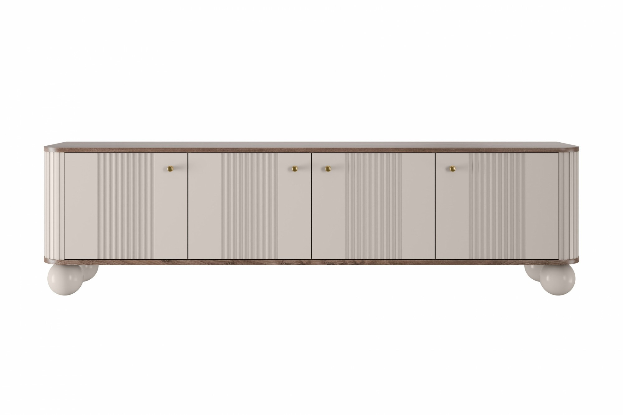 RTV skrinka Vesper 4D 187 cm - kašmír / orech / zlaté úchyty / nohy gule, Šírka: 187, Výška: 48, Hĺbka: 38, Výška nožičiek: 12, Hĺbka dosky: , Montáž:
