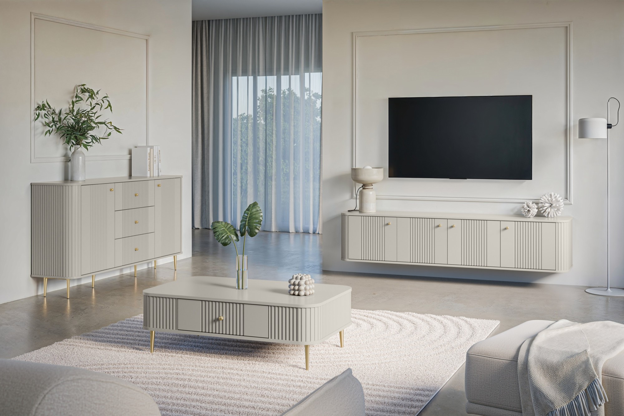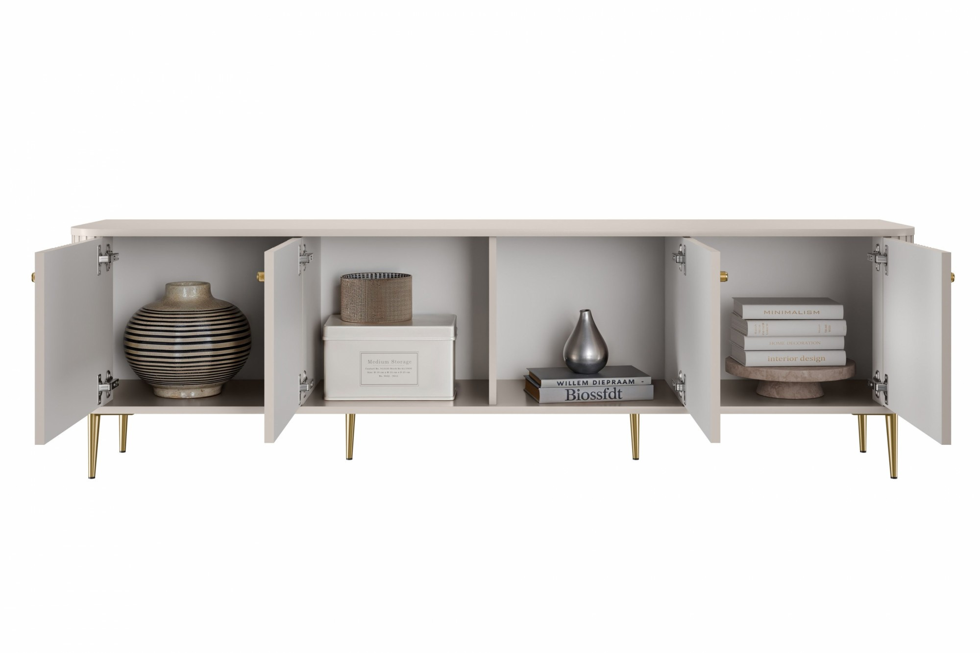 TV komoda Vesper 4D, kašmír / zlaté úchyty