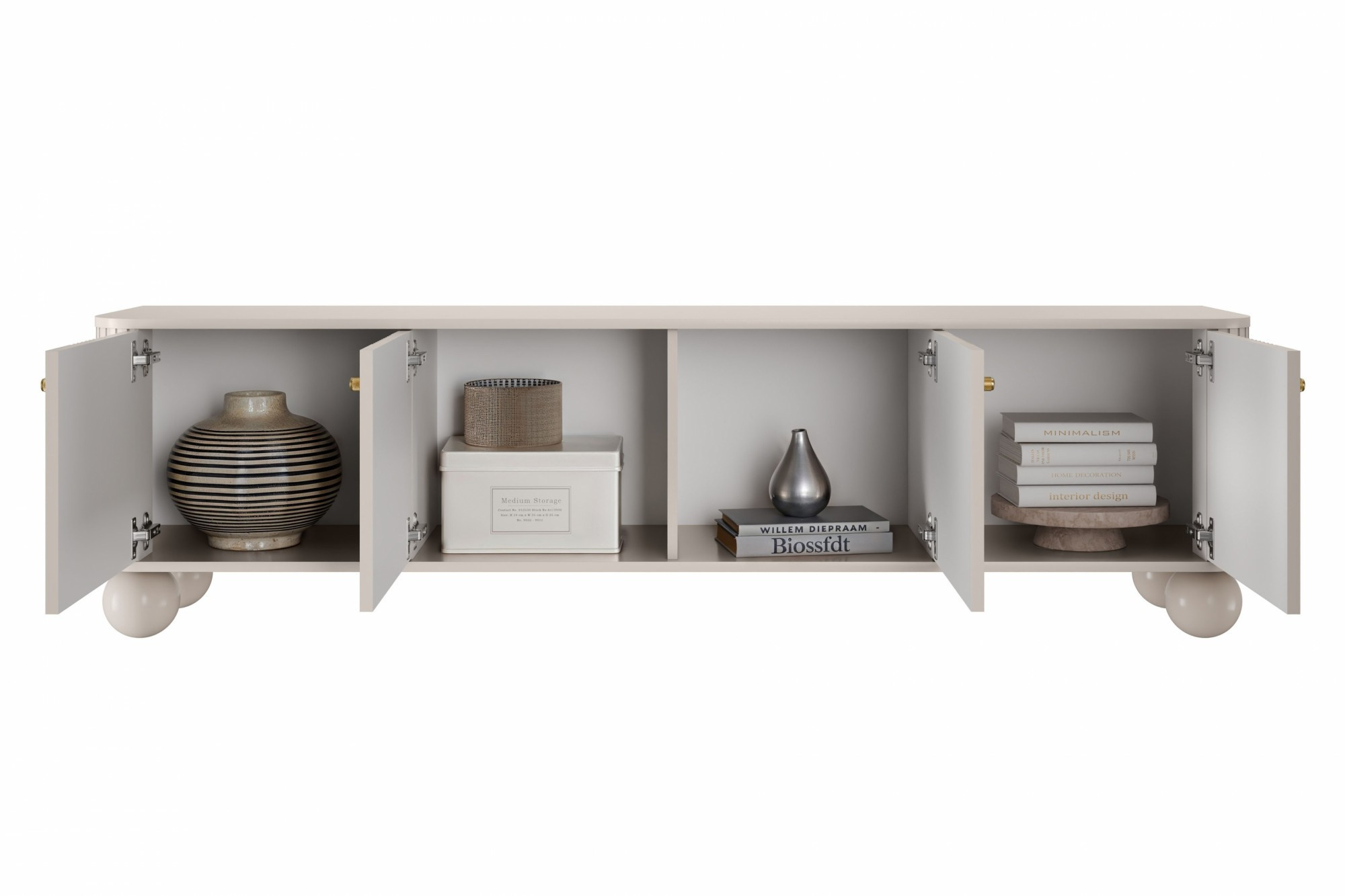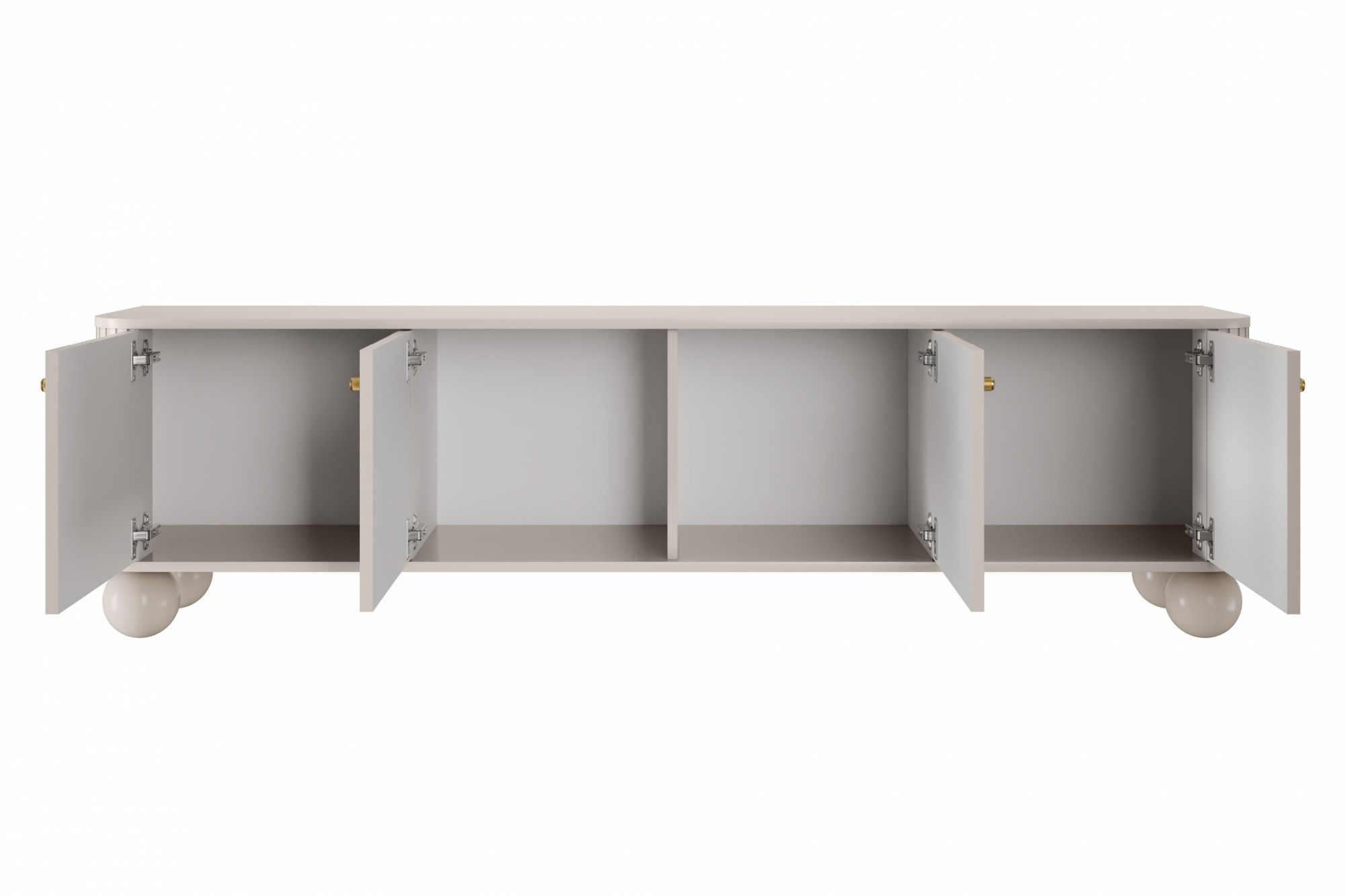 Skrinka RTV Vesper 4D 187 cm - kašmír / zlaté úchyty / nohy gule, Šírka: 187, Výška: 48, Hĺbka: 38, Výška nožičiek: 12, Hĺbka dosky: , Montáž: