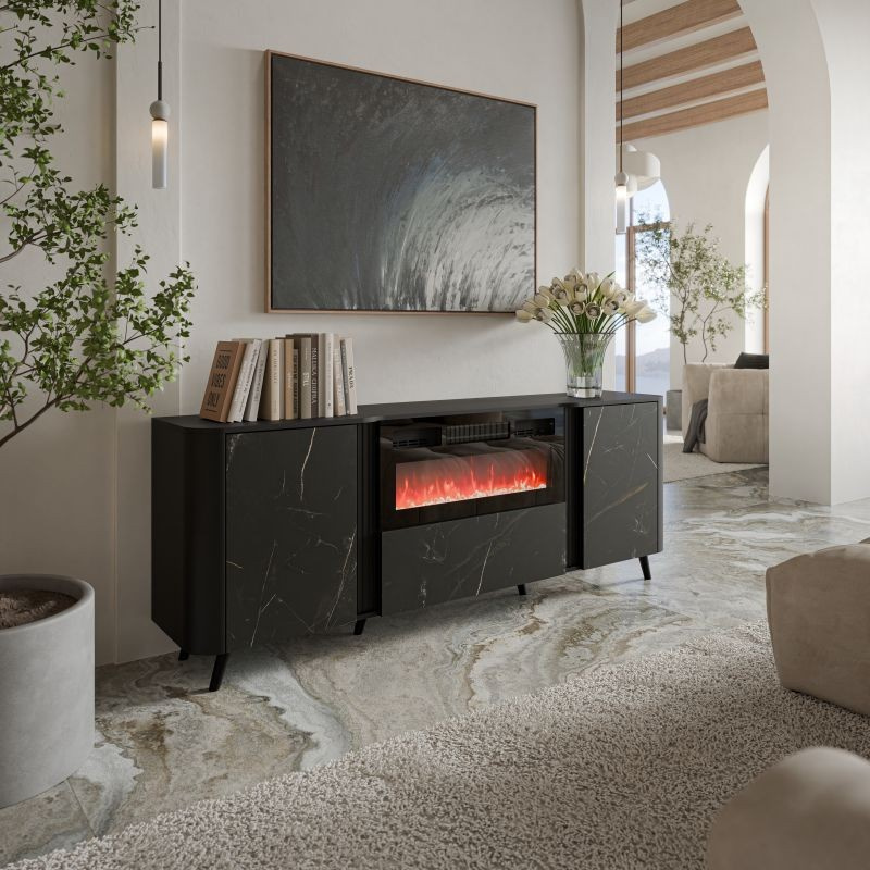 KOMODA 200 EF (s možnosťou montáže krbu, objednáva sa samostatne: CAMA-KRBU-ELEKTRICKÝ-... ) rozmery: Š/V/H - 75cm/200cm/39cm materiál: korpus: drevotriesková doska 16 mm čelá: laminovaná matná drevotriesková doska 16mm + MDF doska 16 mm Nohy: plastové, výška 14 cm Úchyt: PUSH TO OPEN
