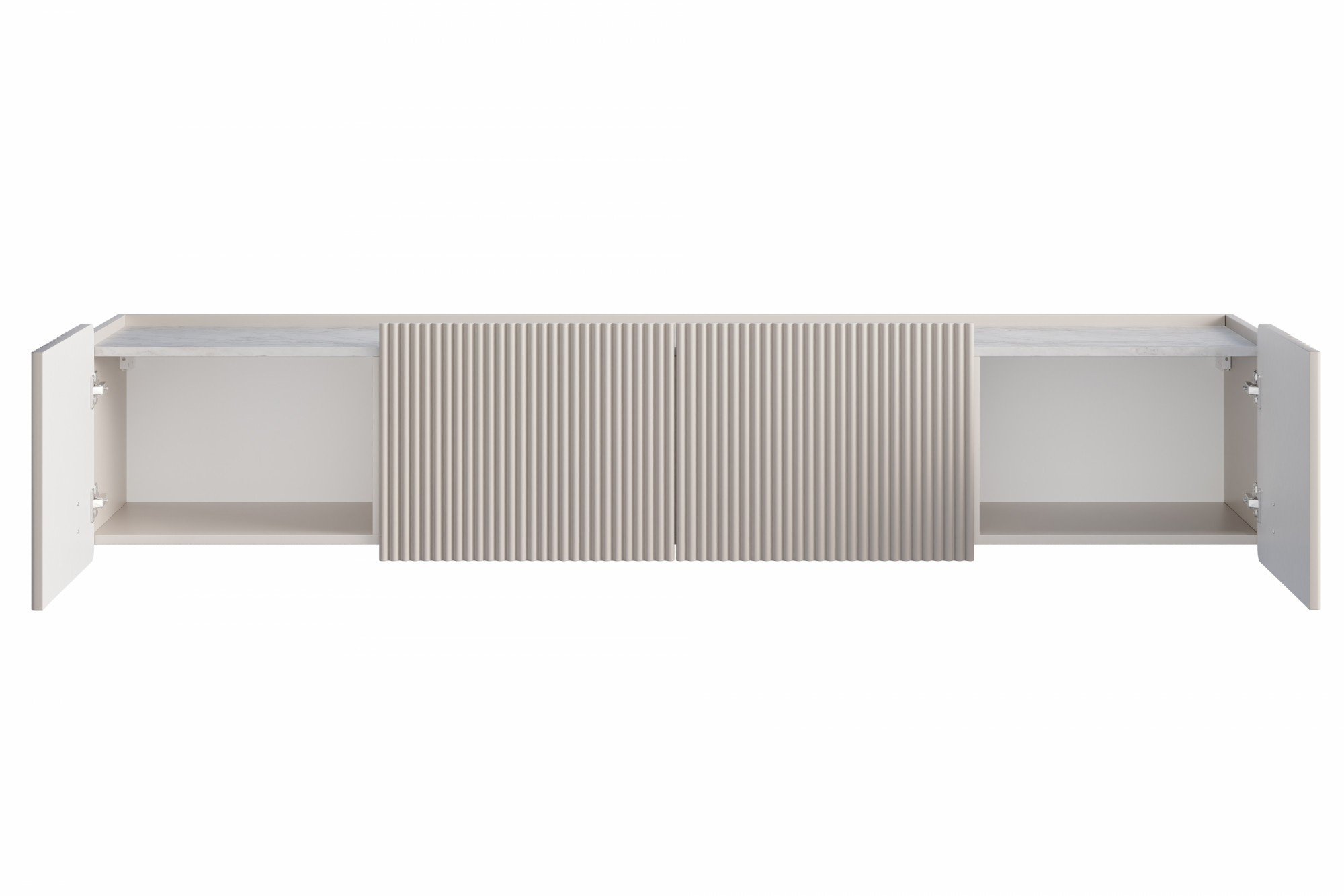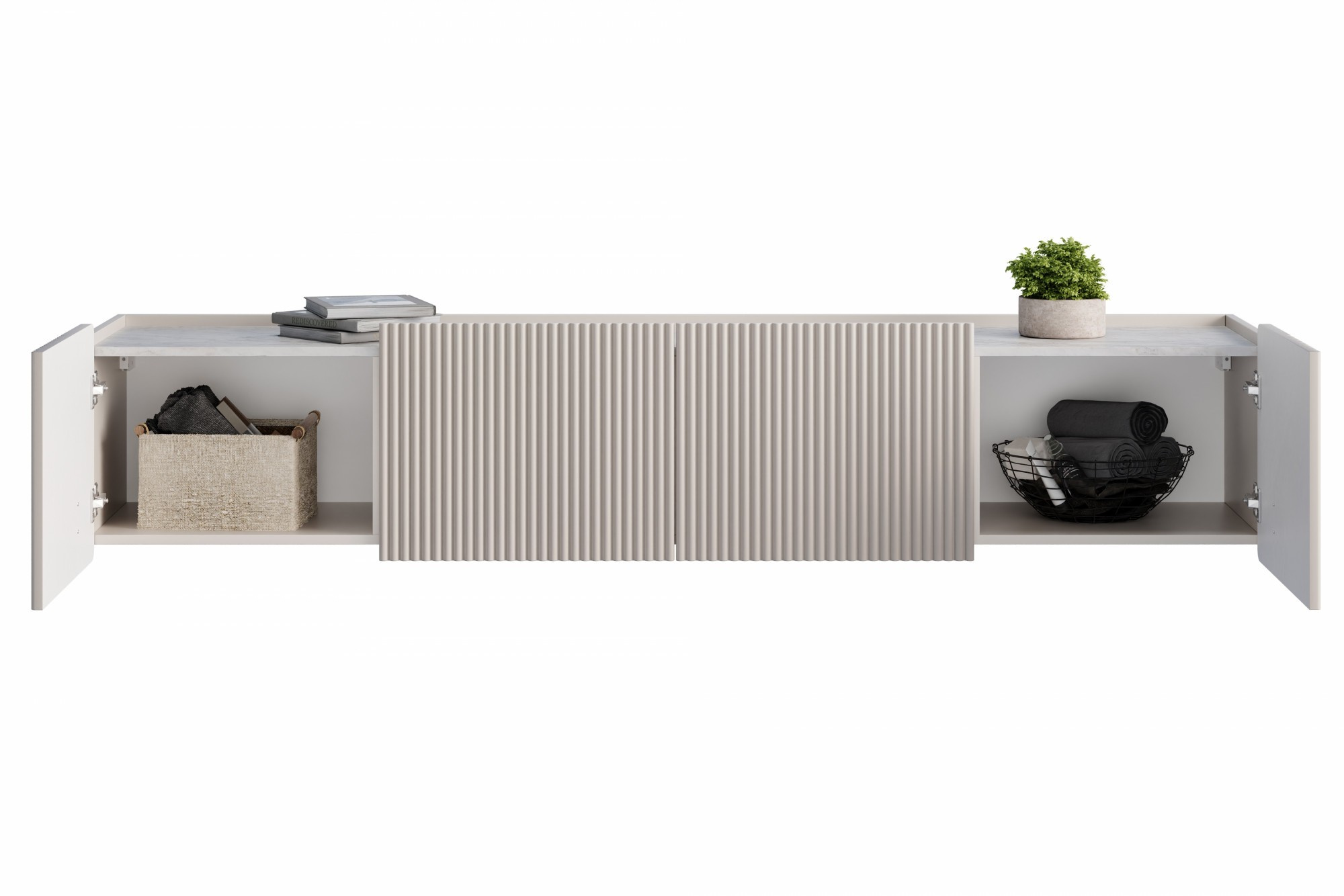 RTV skrinka Malmi 200 cm závesná - kašmír / crema bianca / zlatá, Šírka: 200, Výška: 40, Hĺbka: 42, Výška nožičiek: , Hĺbka dosky: , Montáž: