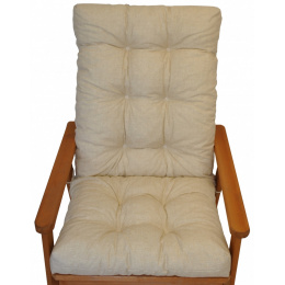Samostatný vankúš pre drevenú záhradnú stoličku s vysokým operadlom. | Univerzálny vankúš pre záhradné kreslo s vysokým operadlom. Vankúš je vhodný pre rôzne drevené záhradné stoličky predávané na našom trhu. Šírka polstru je 50 cm. Celková dĺžka vankúša je 115 cm. Vankúš je prešitý v mieste rozdelenia na sedák a operadlo. Hĺbka sedadla je 47 cm a výška operadla je 68 cm. Vankúš je vyplnený drvenou penou. Na výrobu čalúnenia sa používa vysokokvalitná tkanina a štandardom je vysoká kvalita spracovania. Vankúš je vyrobený v Českej republike z kvalitnej látky a vyznačuje sa vysokou kvalitou spracovania.