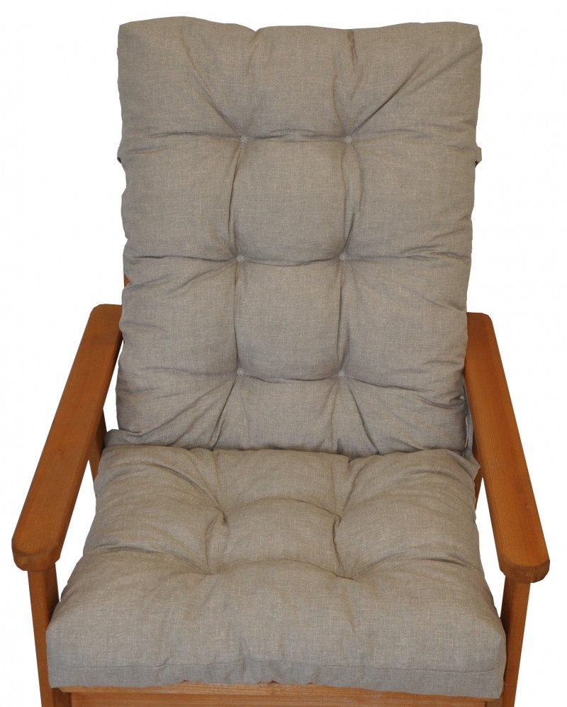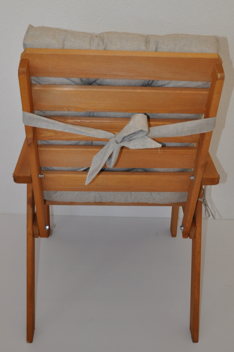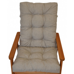 Samostatný vankúš pre drevenú záhradnú stoličku s vysokým operadlom. | Univerzálny vankúš pre záhradné kreslo s vysokým operadlom. Vankúš je vhodný pre rôzne drevené záhradné stoličky predávané na našom trhu. Šírka polstru je 50 cm. Celková dĺžka vankúša je 115 cm. Vankúš je prešitý v mieste rozdelenia na sedák a operadlo. Hĺbka sedadla je 47 cm a výška operadla je 68 cm. Vankúš je vyplnený drvenou penou. Na výrobu čalúnenia sa používa vysokokvalitná tkanina a štandardom je vysoká kvalita spracovania. Vankúš je vyrobený v Českej republike z kvalitnej látky a vyznačuje sa vysokou kvalitou spracovania.