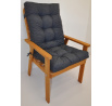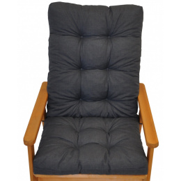 Samostatný vankúš pre drevenú záhradnú stoličku s vysokým operadlom. | Univerzálny vankúš pre záhradné kreslo s vysokým operadlom. Vankúš je vhodný pre rôzne drevené záhradné stoličky predávané na našom trhu. Šírka polstru je 50 cm. Celková dĺžka vankúša je 115 cm. Vankúš je prešitý v mieste rozdelenia na sedák a operadlo. Hĺbka sedadla je 47 cm a výška operadla je 68 cm. Vankúš je vyplnený drvenou penou. Na výrobu čalúnenia sa používa vysokokvalitná tkanina a štandardom je vysoká kvalita spracovania. Vankúš je vyrobený v Českej republike z kvalitnej látky a vyznačuje sa vysokou kvalitou spracovania.