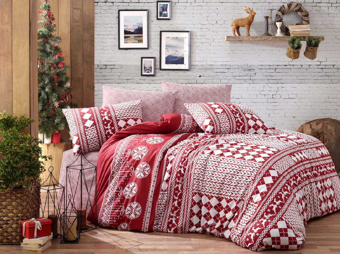 Vianočné predĺžené obliečky bavlna 140x220, 70x90cm Christmas red