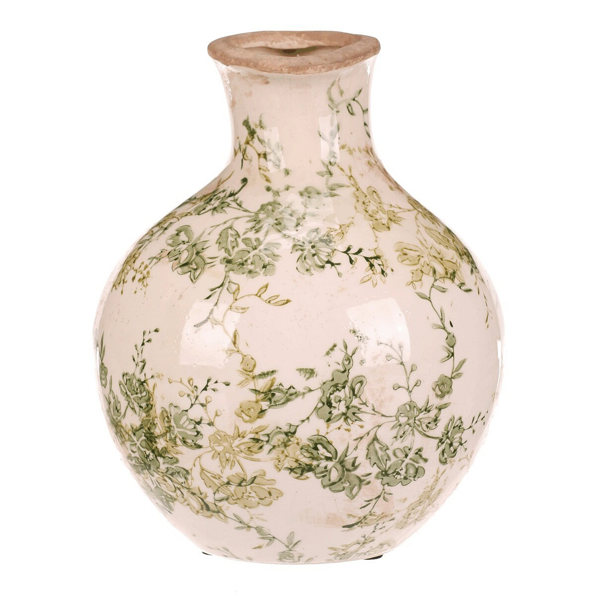 Váza keramická - džbánek, retro, zelené květy, vel. M