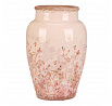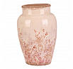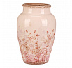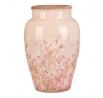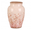 Váza keramická - zaoblená, retro, růžové květy, vel. L