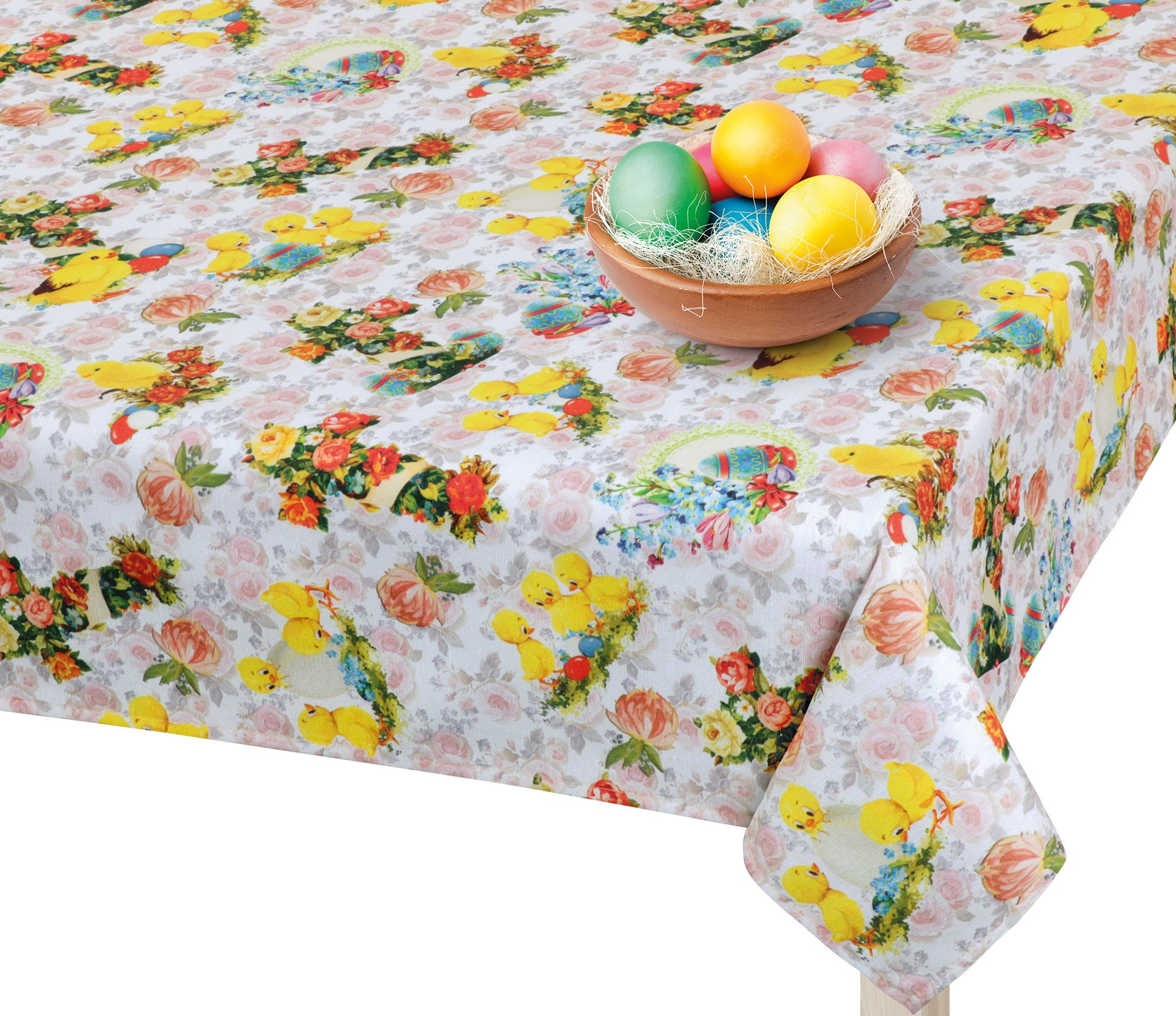 Tento obrus s veľkonočným motívom je ušitý z kvalitného materiálu, ktorý je odolný voči poškodeniu. Na Vašom stole bude skvele vynikať a stane sa obľúbeným doplnkom jarných sviatkov nielen vo Vašej kuchyni. V rovnakom dizajne je možné objednať aj kuchynskú chňapku alebo obliečku na vankúšik.