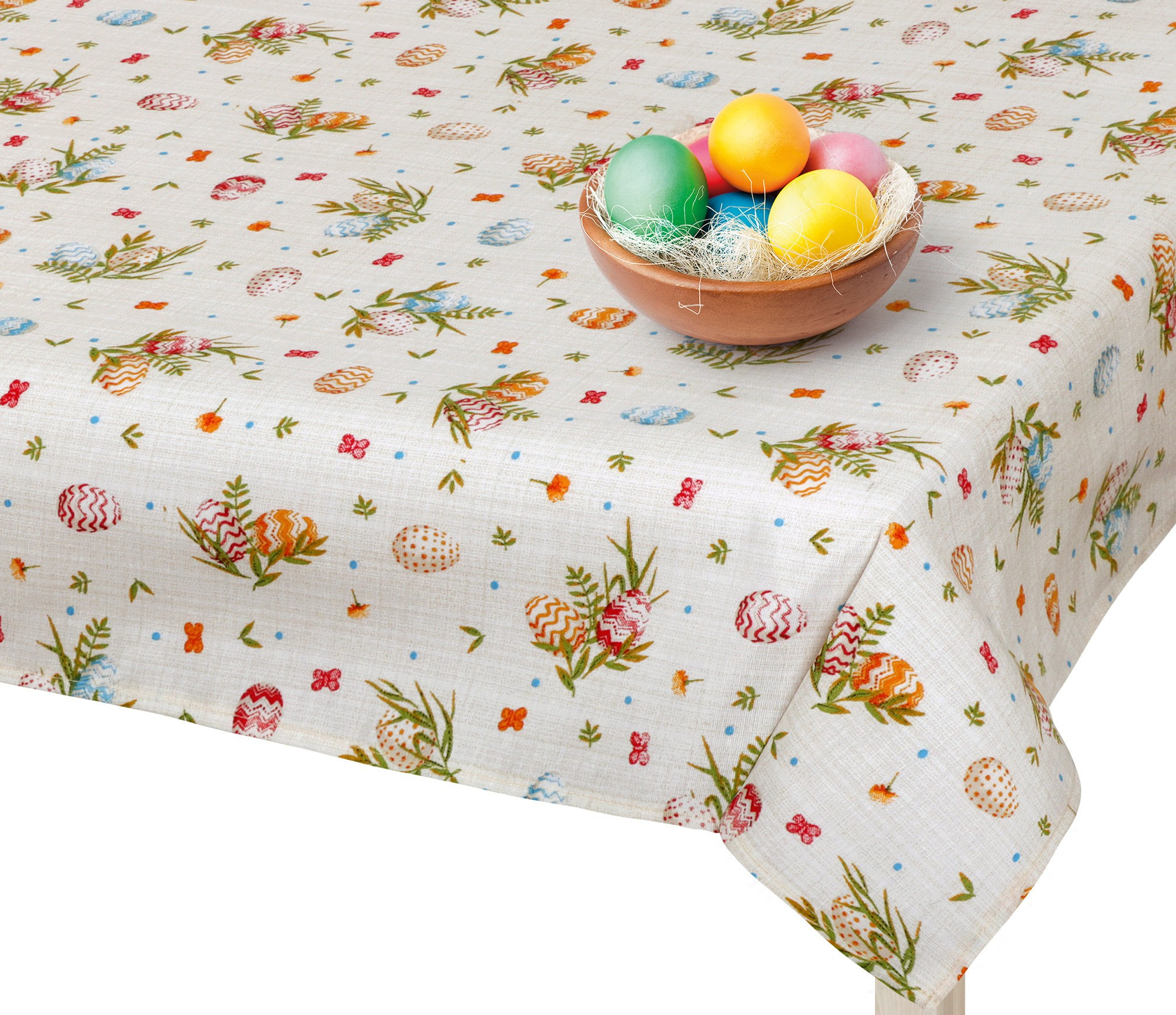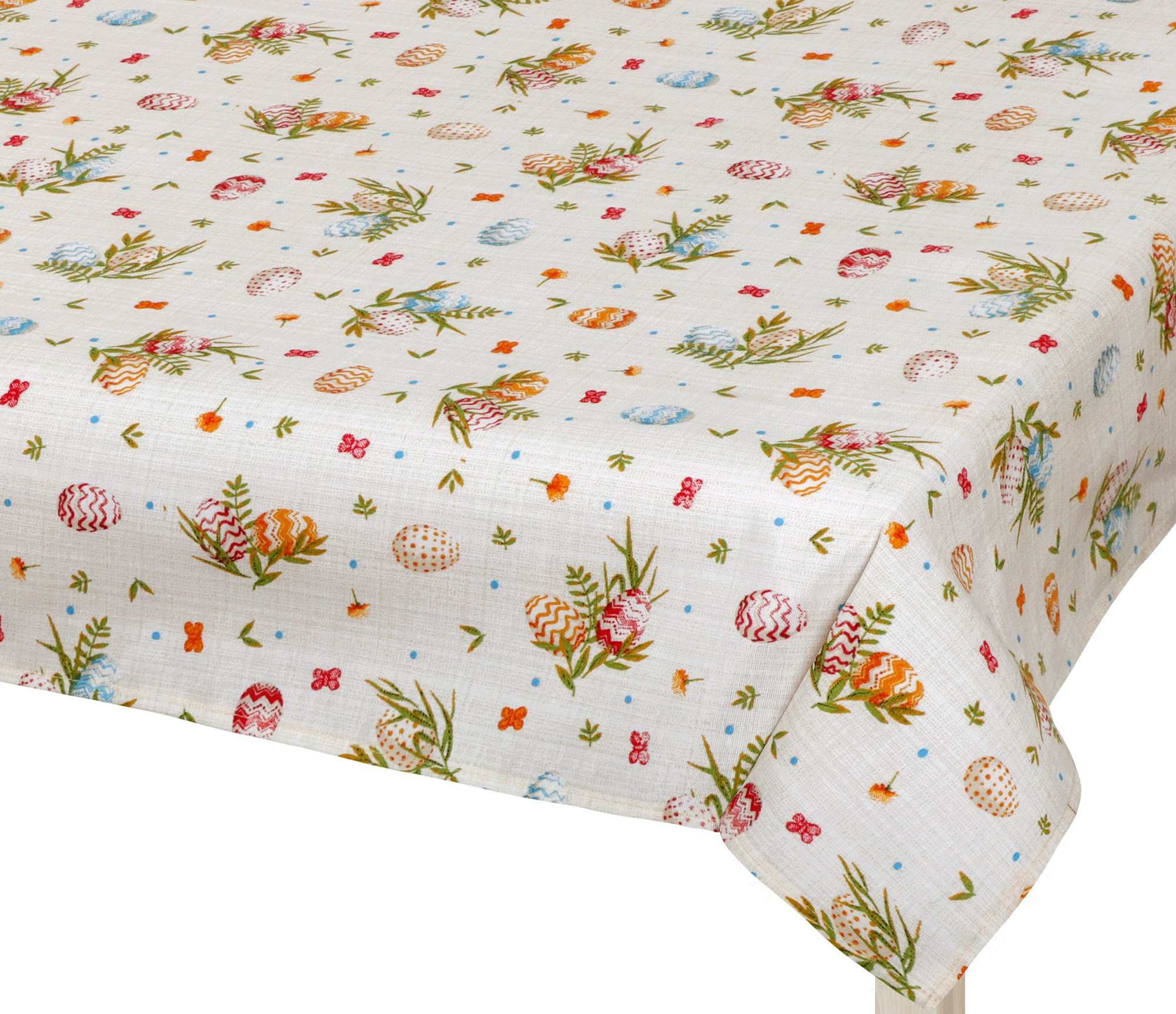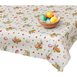 Tento obrus s veľkonočným motívom je ušitý z kvalitného materiálu, ktorý je odolný voči poškodeniu. Na Vašom stole bude skvele vynikať a stane sa obľúbeným doplnkom jarných sviatkov nielen vo Vašej kuchyni. V rovnakom dizajne je možné objednať aj kuchynskú chňapku alebo obliečku na vankúšik.