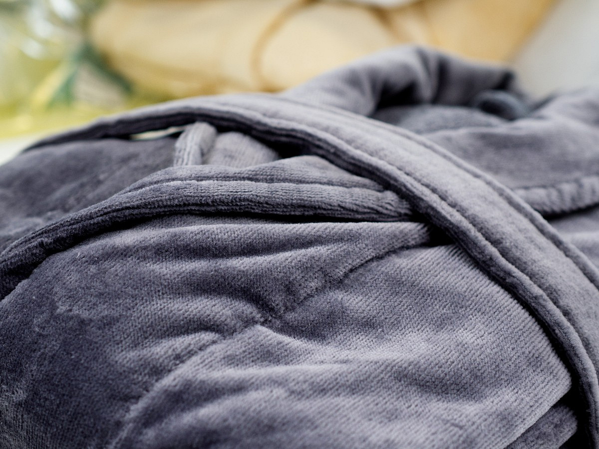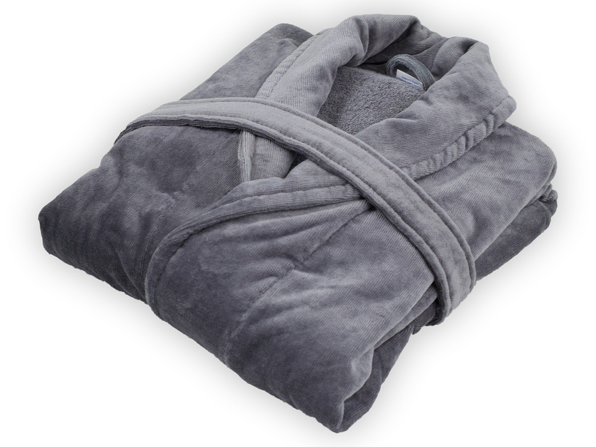 Velúrový župan sivý S