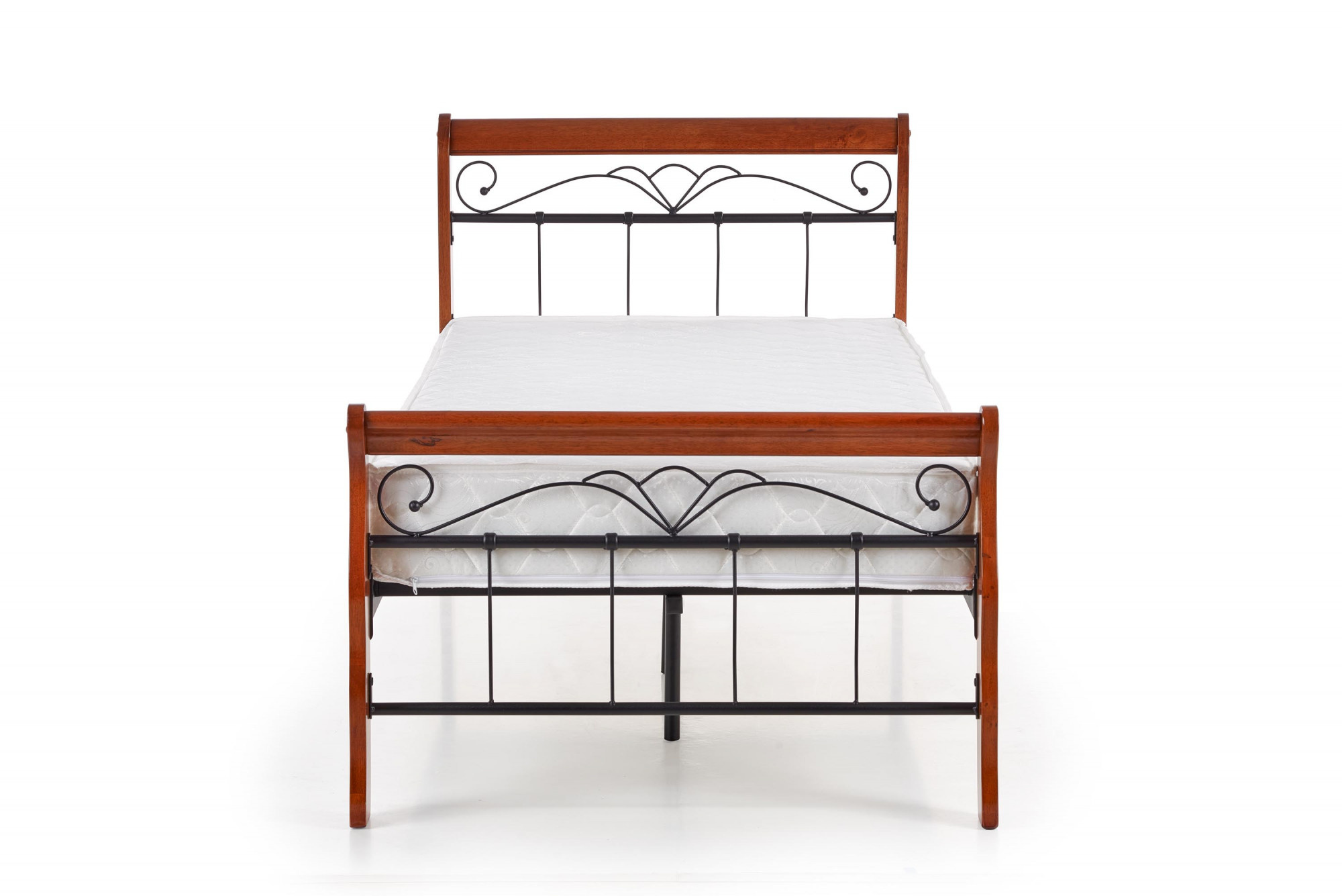 rozmery: 93/204/91 cm, rozmery pre matrac: 90/200 cm, materiál: masívne drevo / lakovaná oceľ, farba: antická čerešňa / čierna