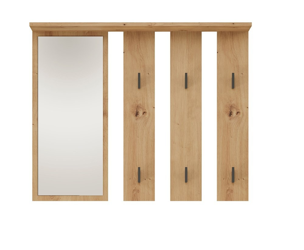 Nástenný vešiak so zrkadlom a policou Pargas splní očakávania všetkých, ktorí oceňujú kombináciu elegancie a praktickosti. Je ideálnym riešením pre každú predsieň – či už malú, alebo priestrannú. Nábytok je vyrobený z kvalitného lamina, ktoré je ľahko udržiavateľné a odolné proti oderu, dlhú životnosť nábytku zabezpečujú hrany zakončené odolným ABS materiálom.
